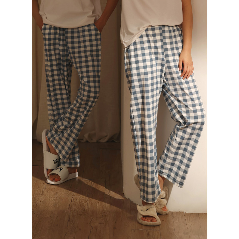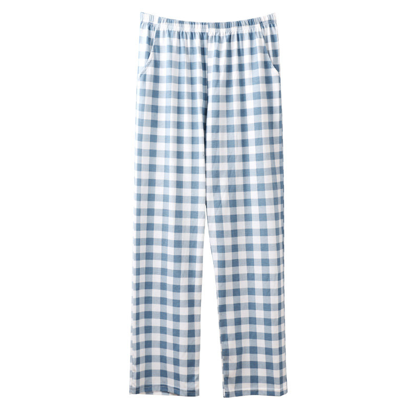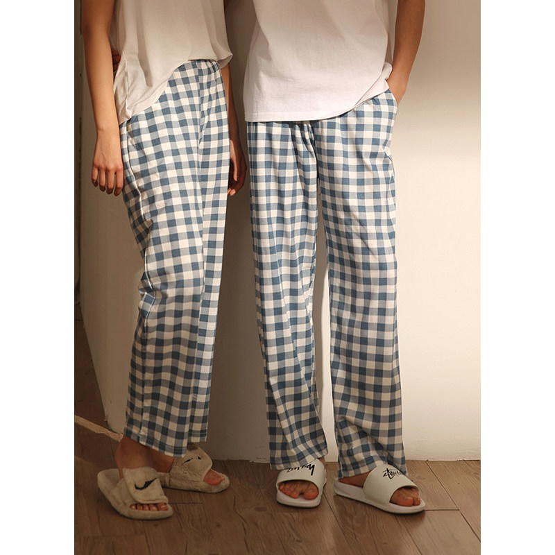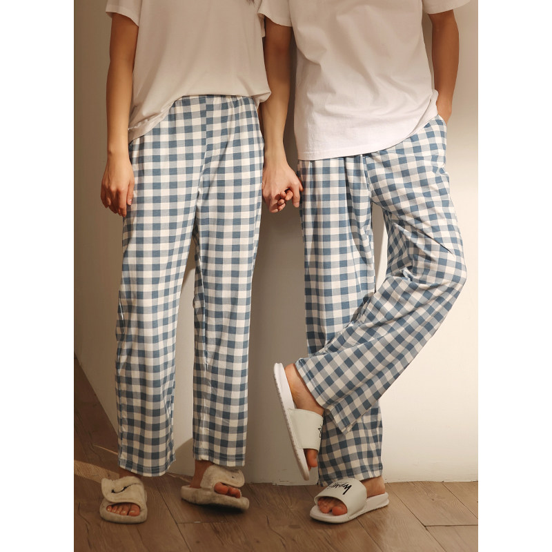 Single pair of pajamas couples men's and women's cotton trousers spring and autumn models summer thin models loose can be worn outside plaid printed home pants