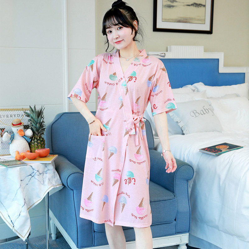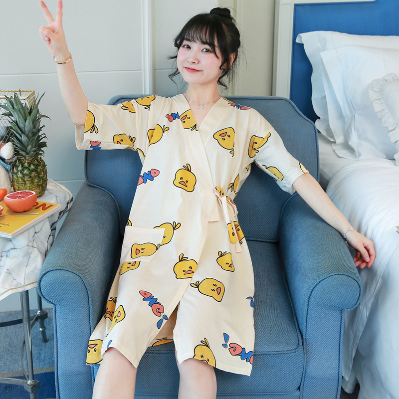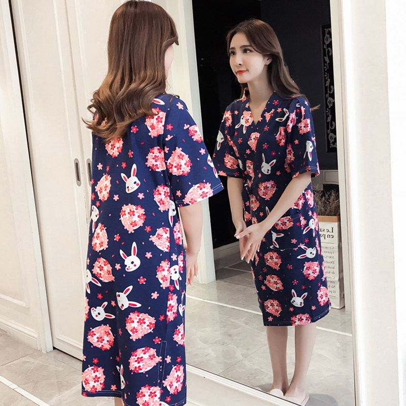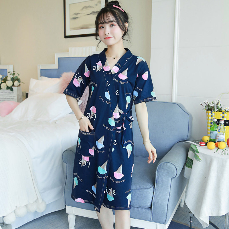 Japanese GP Sleeping Robe Women's New Pure Cotton Thin style Short sleeves Bathrobe Spring Summer Season Japanese style kimono and medium long version of spring and autumn lovely