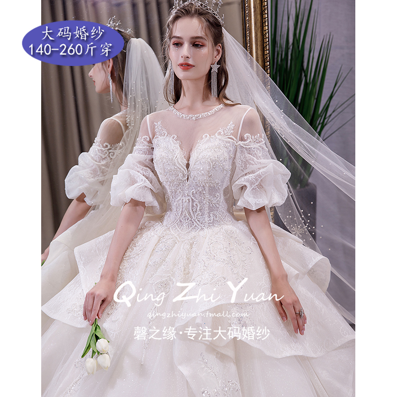 Large size staple wedding dress 2022 new brides wedding gown Fat mm 200 catty extra for pregnant women Heavy workout