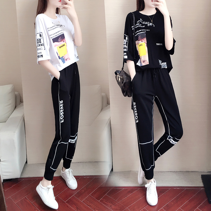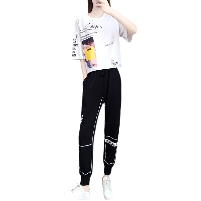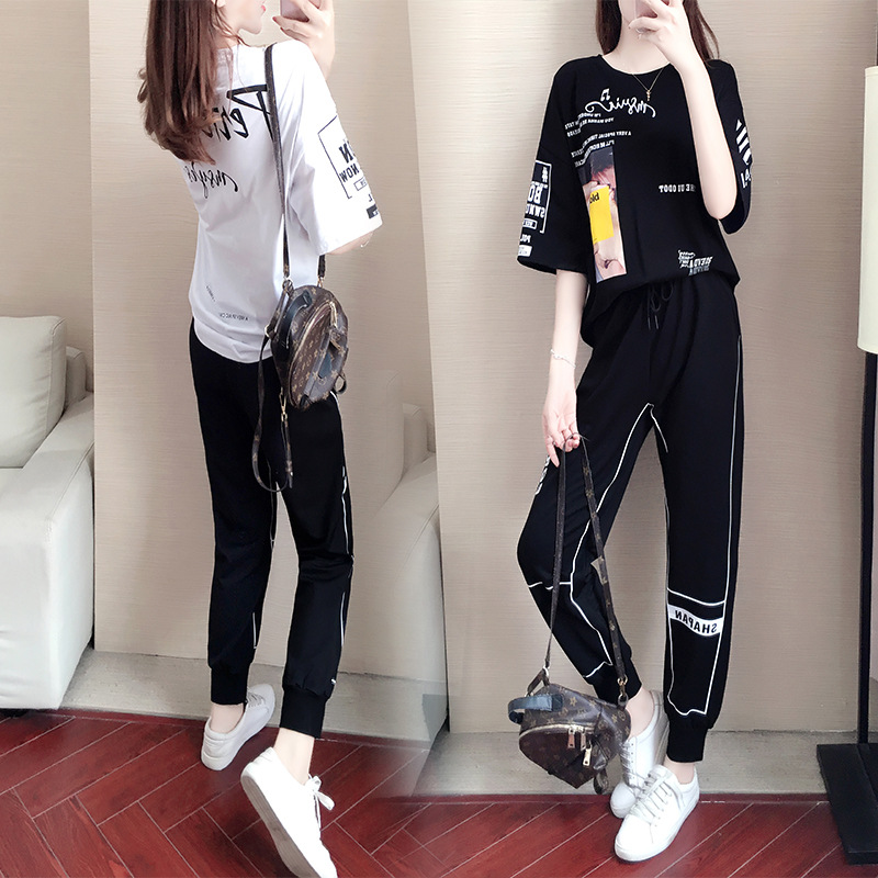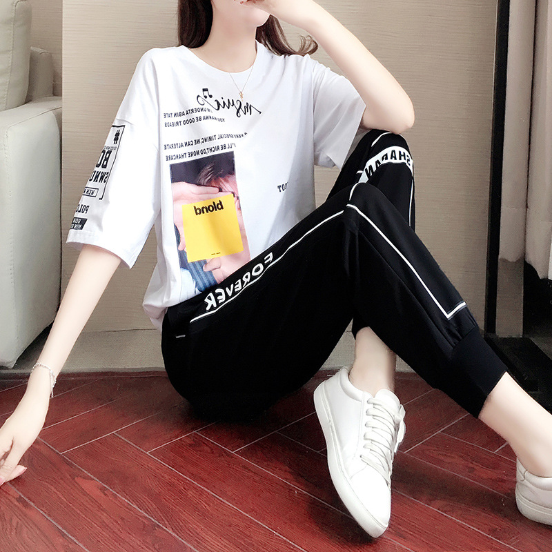 Sandro Blanca Leisure Sports Suit Women Loose Nets Red Minus-Age Printed Cartoon T-shirt Lovers two sets
