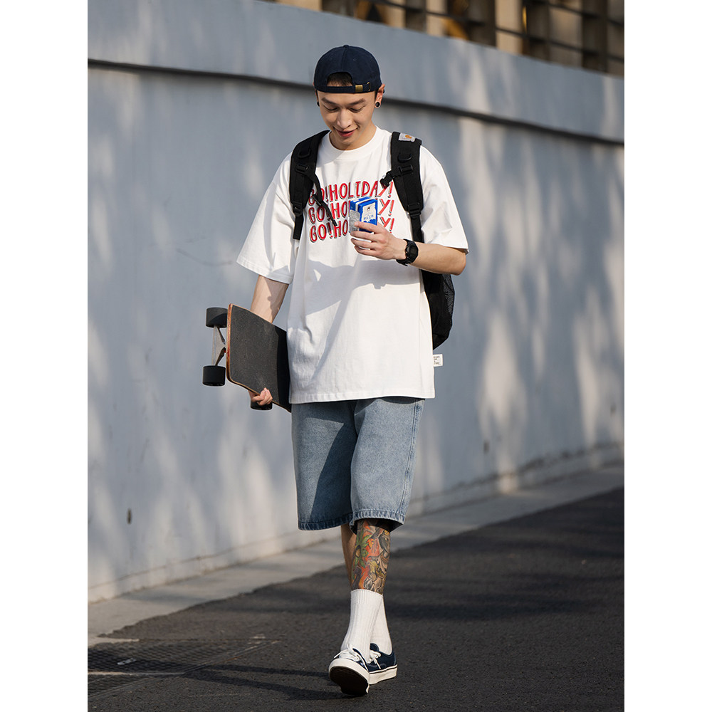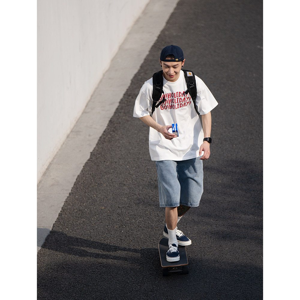 Bellken Morning studio Day of the day Retro T-shirt Male short sleeve holiday printed loose minimalist dress
