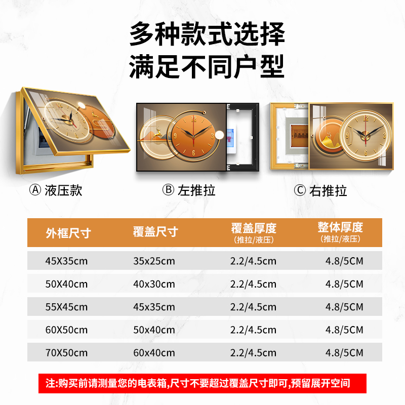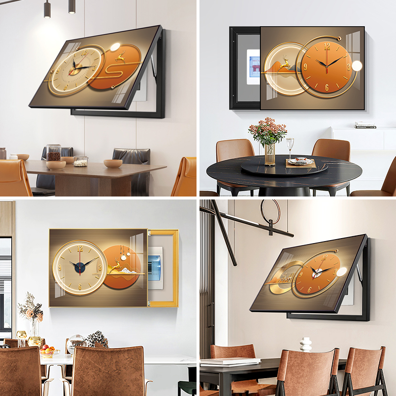 Modern light lavish electric meter box decoration painting with watch and watch free of punching electric gate box hanging clock shielded from sitting room distribution box hanging painting