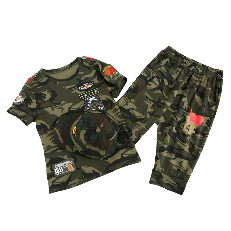 Children's camouflats for summer clothing Eating Chicken Special Soldiers Suit Boy Short Sleeve Handsome Young Kids Military Training Camp Kids Clothes Cool