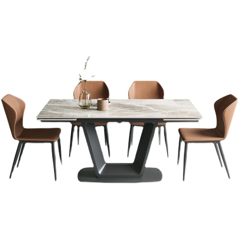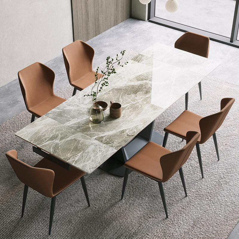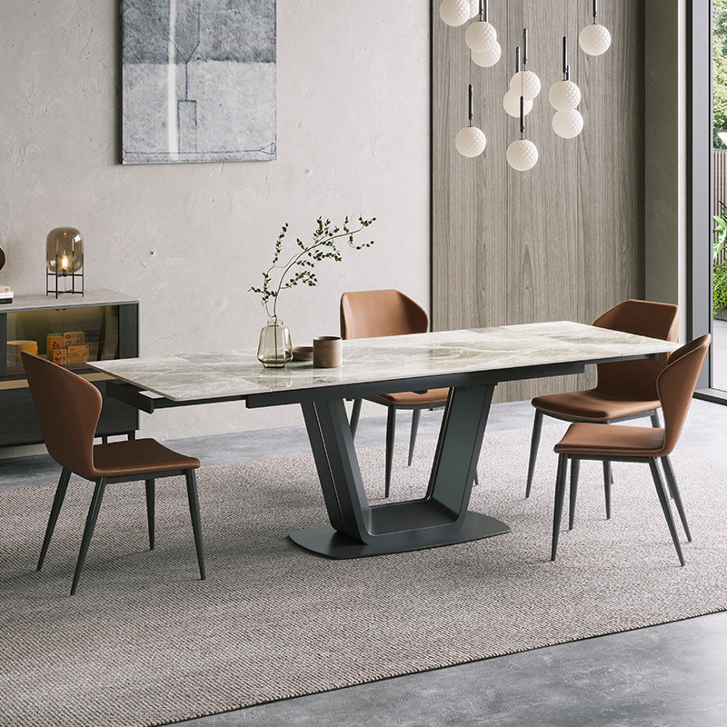 The Silent Wind antibacterial rock plate telescopic dining table and chairs combined with extremely simply angular rectangle can unfold the net red table-Taobao