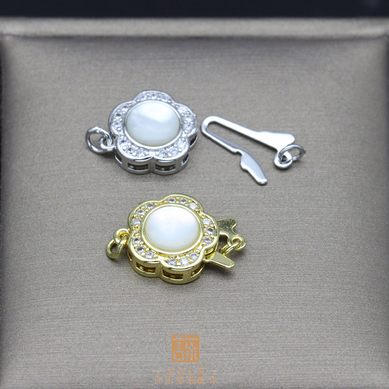 Exquisite shell carving pearl necklace button diy hand clasp buckle shell craft 14k note gold connection buckle handmade flowers