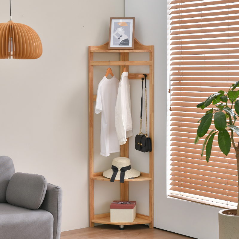 Corner cap rack Bedroom with rooftop hanger rack household interior corner staffing frame simple wall corner solid wooden coat rack