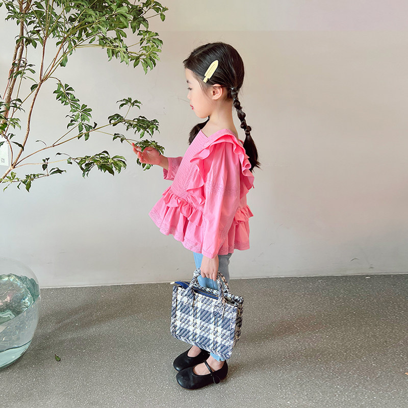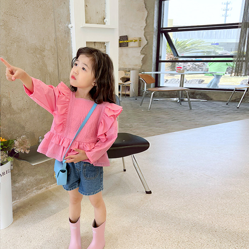 Blue Little Dad girl doll Shirt 2022 Summer clothes new children Han version Baby Fried Street Flowers Side Blouses