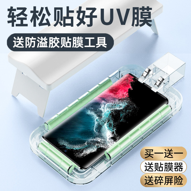 Suitable for Samsung s22ultra steel chemical film uv full glue s22 curved screen full screen cover sensitive mobile phone protective film s22u film curved glass film Fingerprint unlock light solid film s22 adhesive film