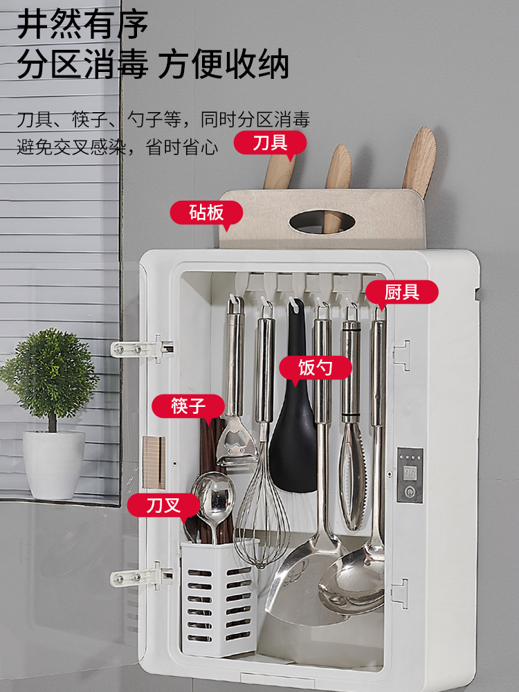Japan Import MUJIE Kitchen Intelligent Disinfection Machine Tool Holder Chopsticks Rack Shovel Spoon cookware to contain UV rays