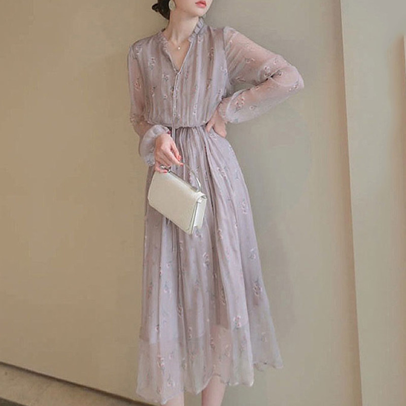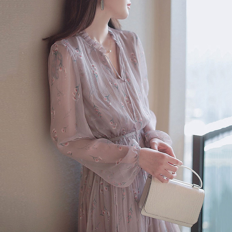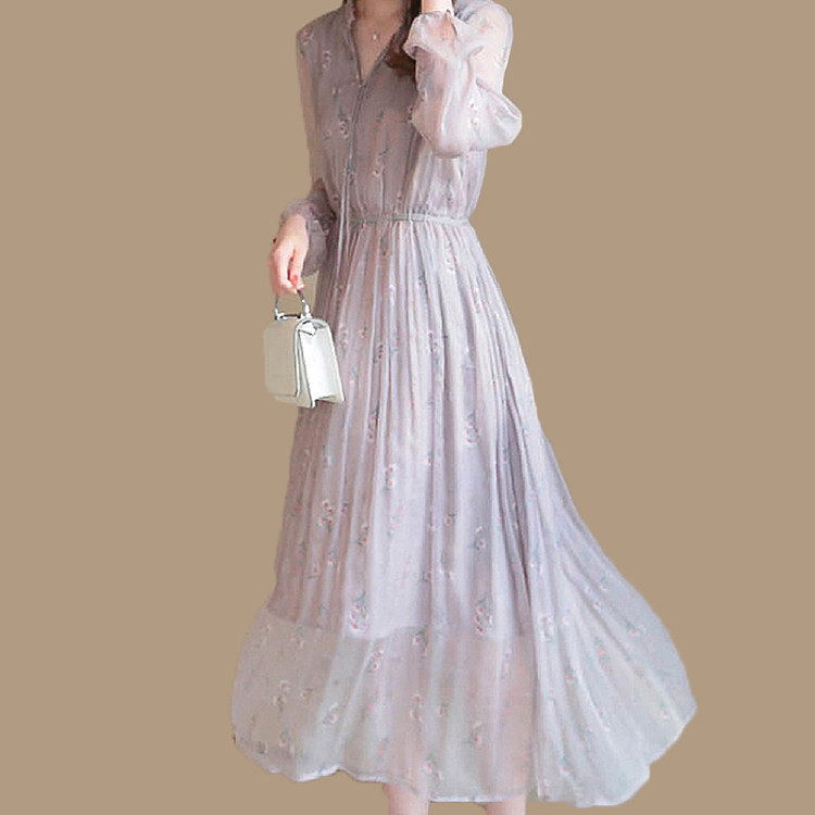 Sandro Bassa2022 new French style retro gentle wind purple advanced sensational dress women's summer