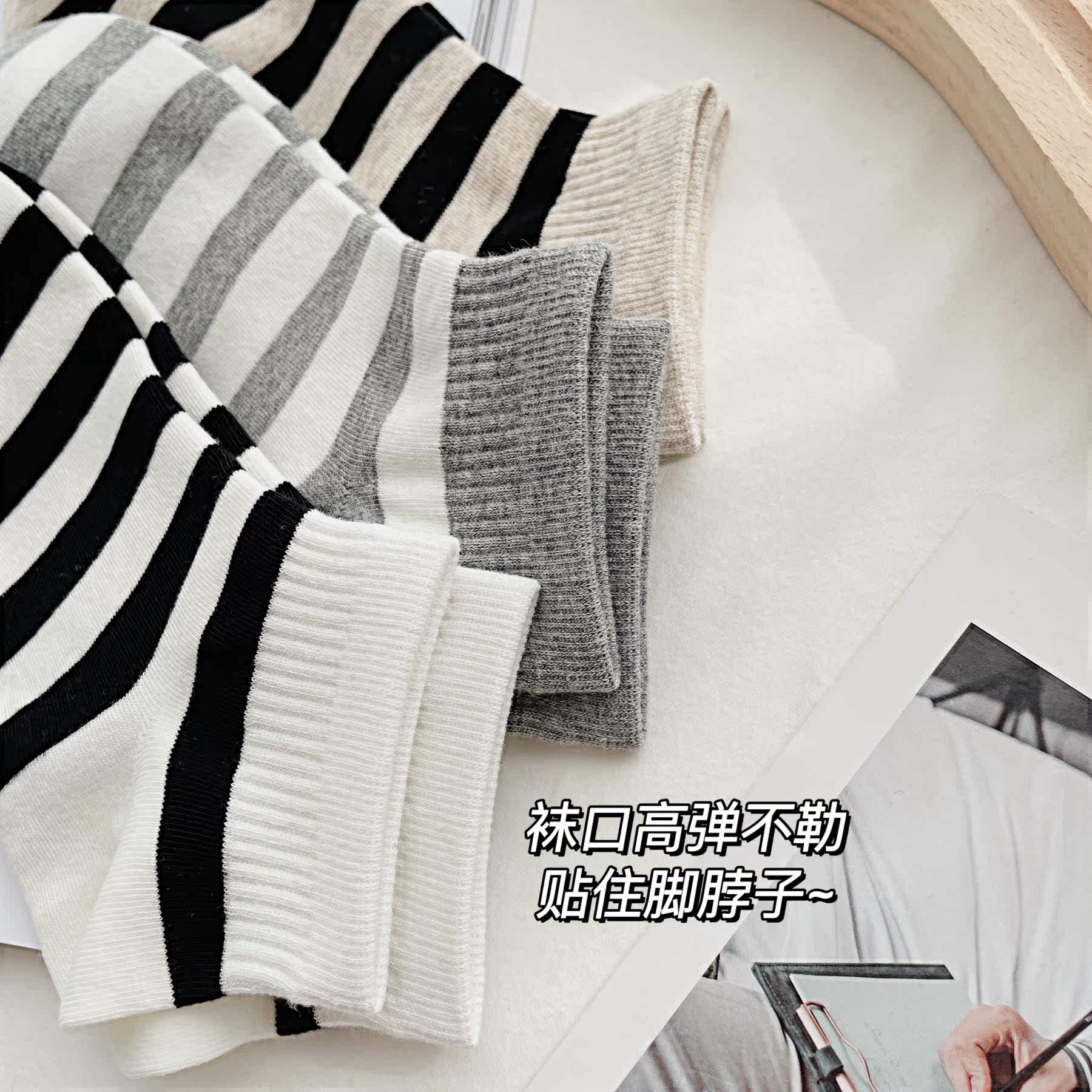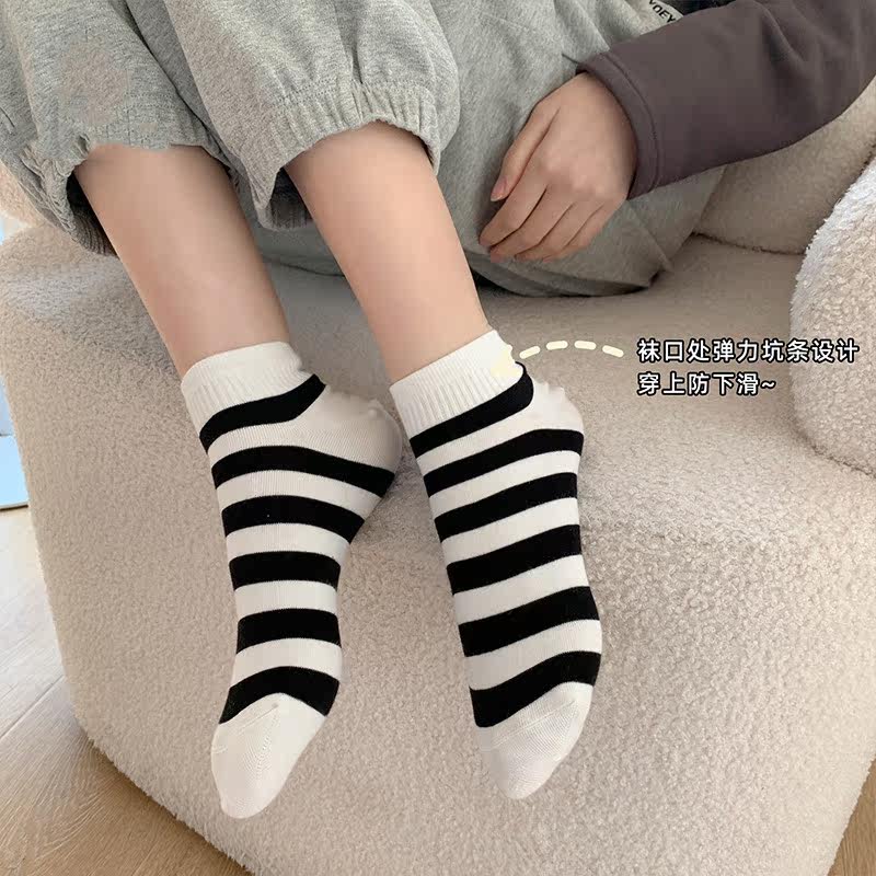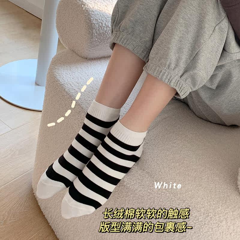 (Wrap feeling full of points) Xinjiang Changsuede Cotton Short Sox Women's pure cotton shallow mouth spring and summer without falling out with breathable striped socks