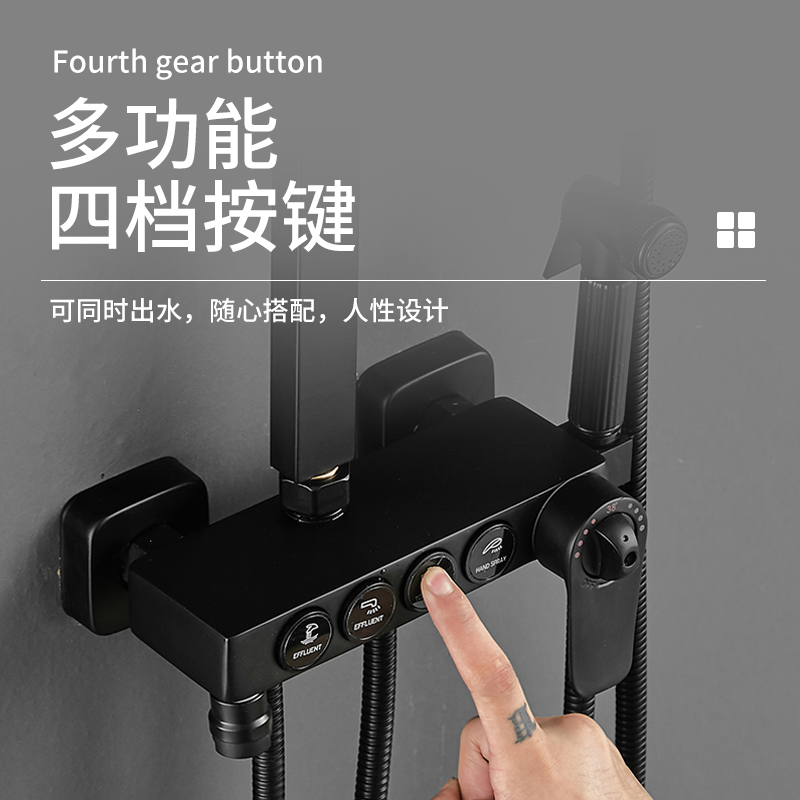A section (black) Tang three stalls hot and cold shower head A section (black gold) Tang three stalls hot and cold shower head A section (plated) Tang three stalls hot and cold shower head B (black) fork four-gear hot and cold shower head B (black gold) fork