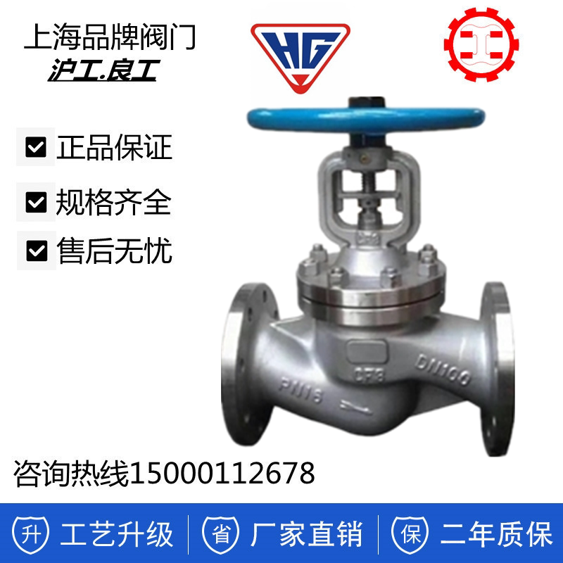 Shanghai Lianggong Valve Hugong WJ41H-16P Stainless Steel 304 High Temperature Flange Bellows Flange Globe Valve