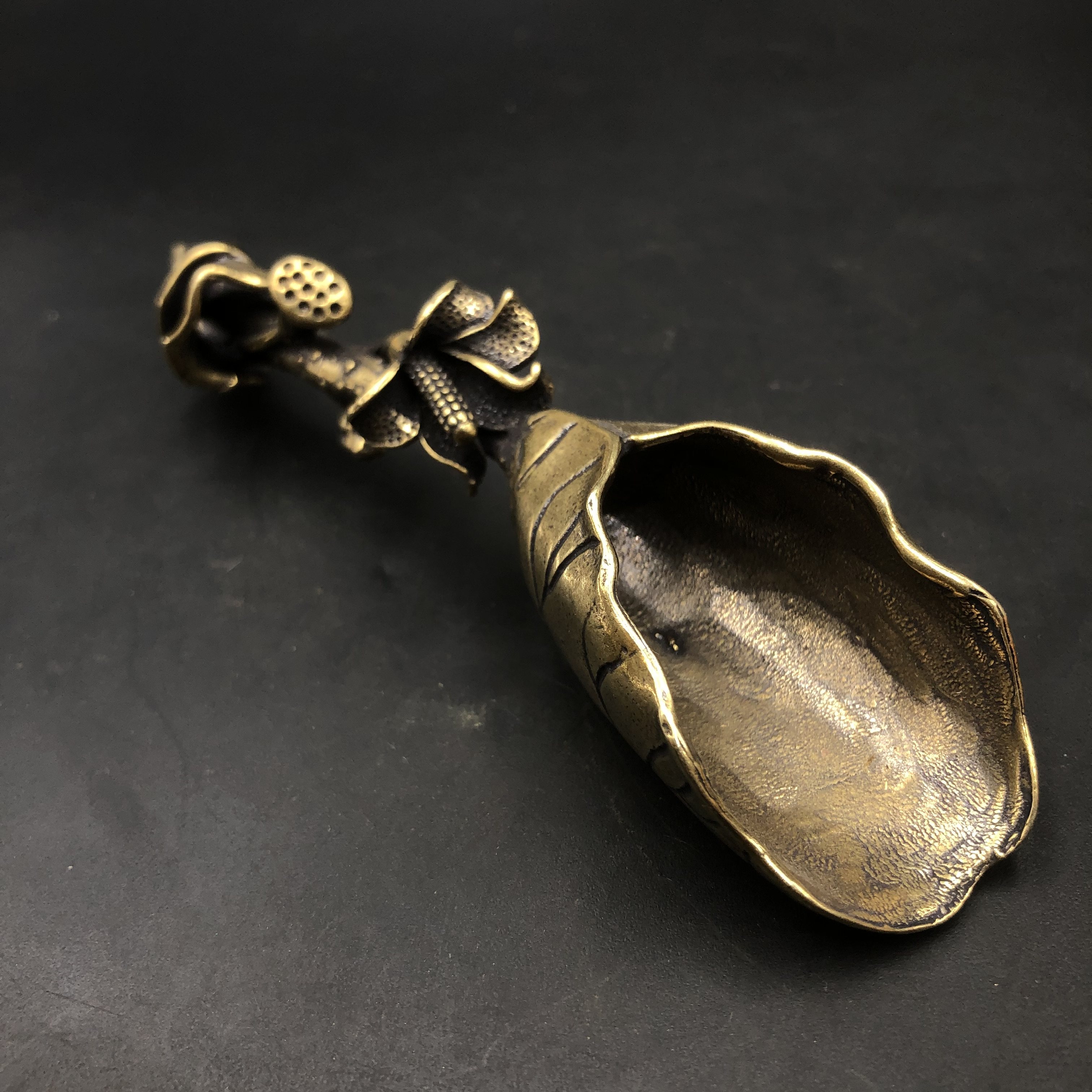 Ancient Play Lotus Tea Shovel Handicrafts Chinese Vintage Tea Shovel Teaspoon Teaspoon Teaspoon Tea Spoonful Tea Spotting Tabletop Small Pendulum
