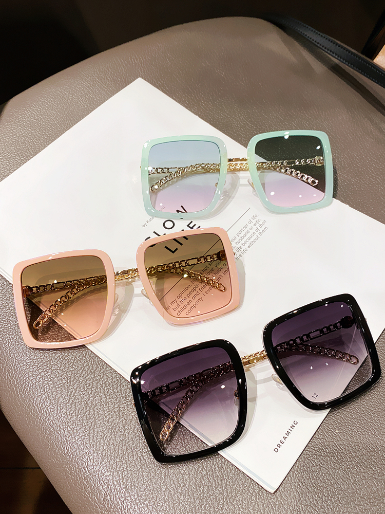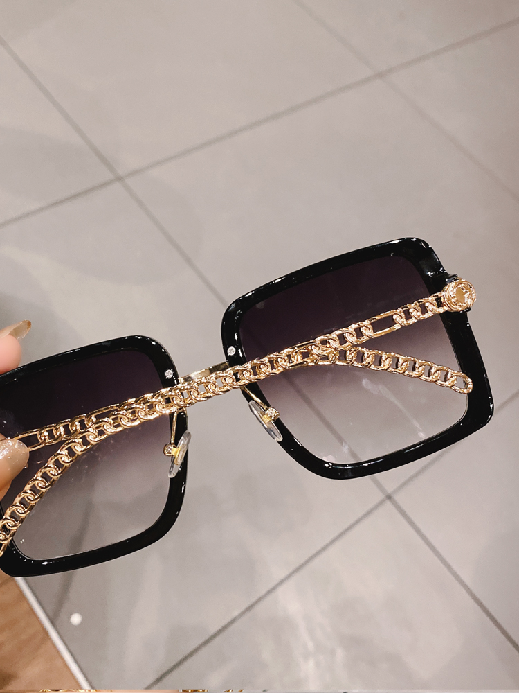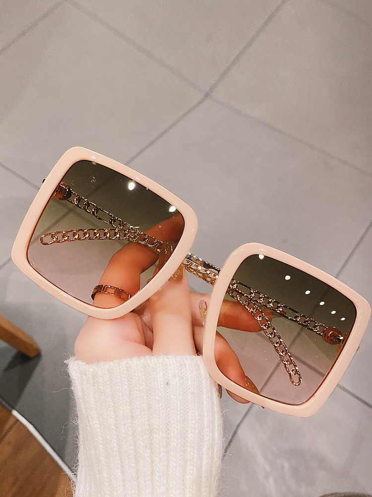 Cula Kinel Personality Metal Chain Glasses Fashion Light Color Sunglasses Woman Big Box Casual Retro Sunglasses-Taobao