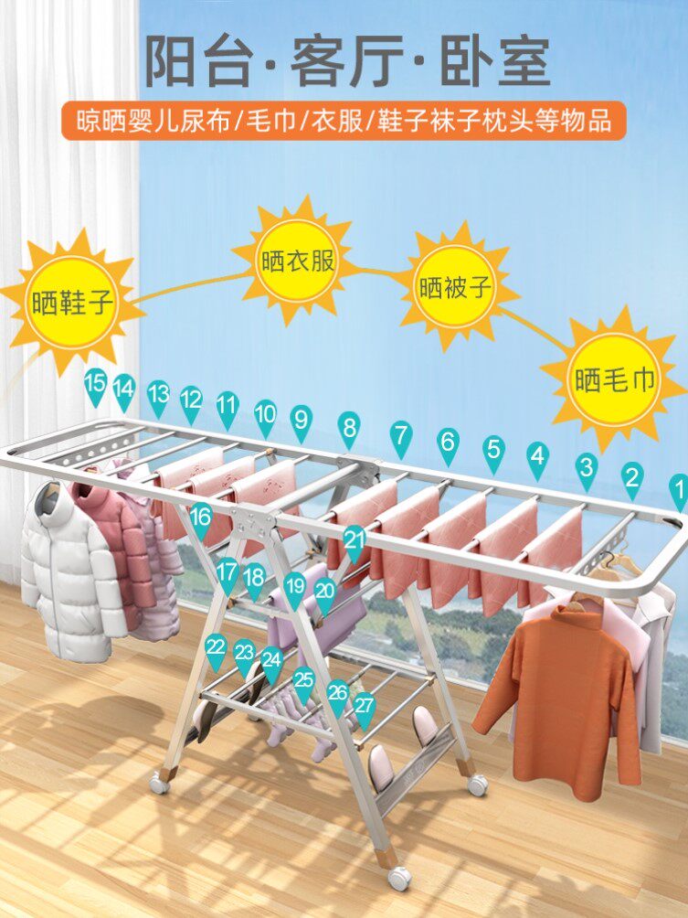 Roof top drying quilt artifact does not take up space simple small clothes drying rack floor folding outdoor thickening and thickening