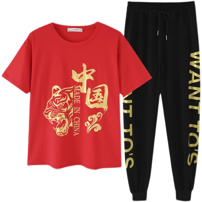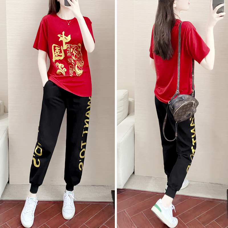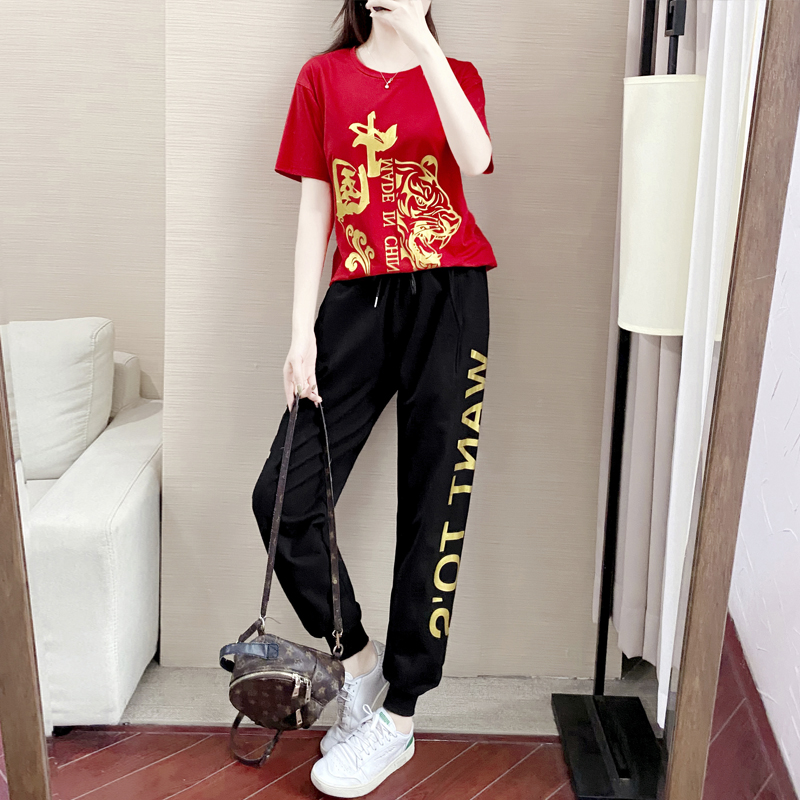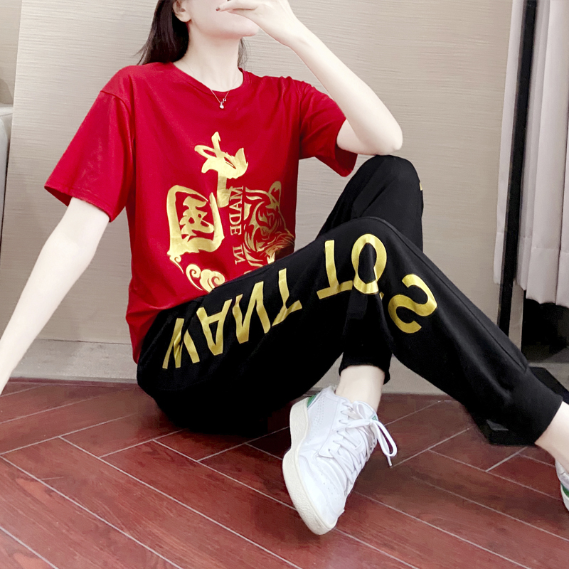 China Sports Casual Suit Women 2022 Online Red Summer New Short Sleeve Fashion Trends Dancing Vets Two