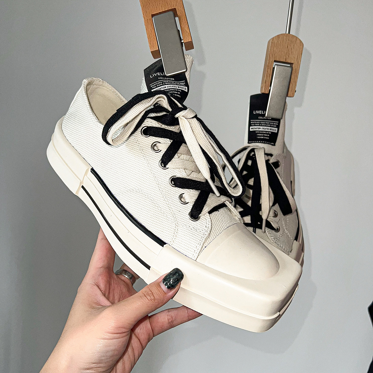 Trendy brand ruffian handsome fried street men's shoes high-end niche square toe canvas shoes double shoelace high-top shoes men's skate shoes
