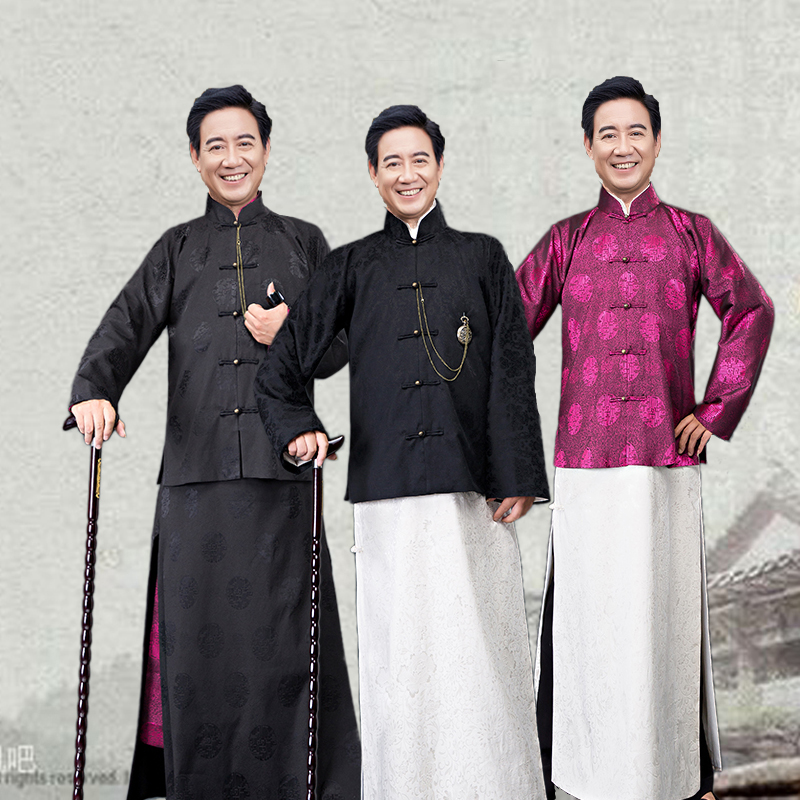 Beige robes, one (beige robes, black coats) two (beige robes, flower coats) three (black dresses black tops) four (color robes black dresses black coats)