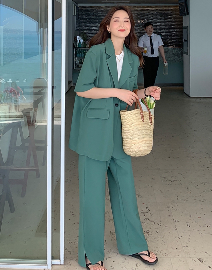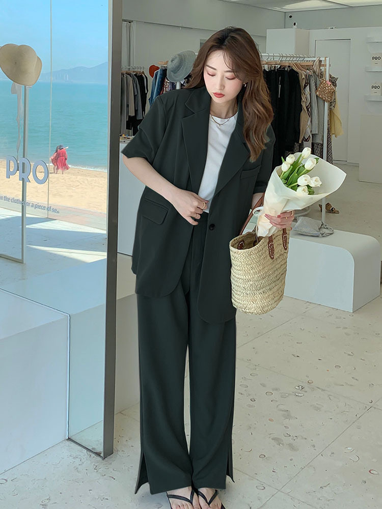 Large yard suit female short sleeve 2023 summer new temperament casual suit thin fat mm broad leg pants suit