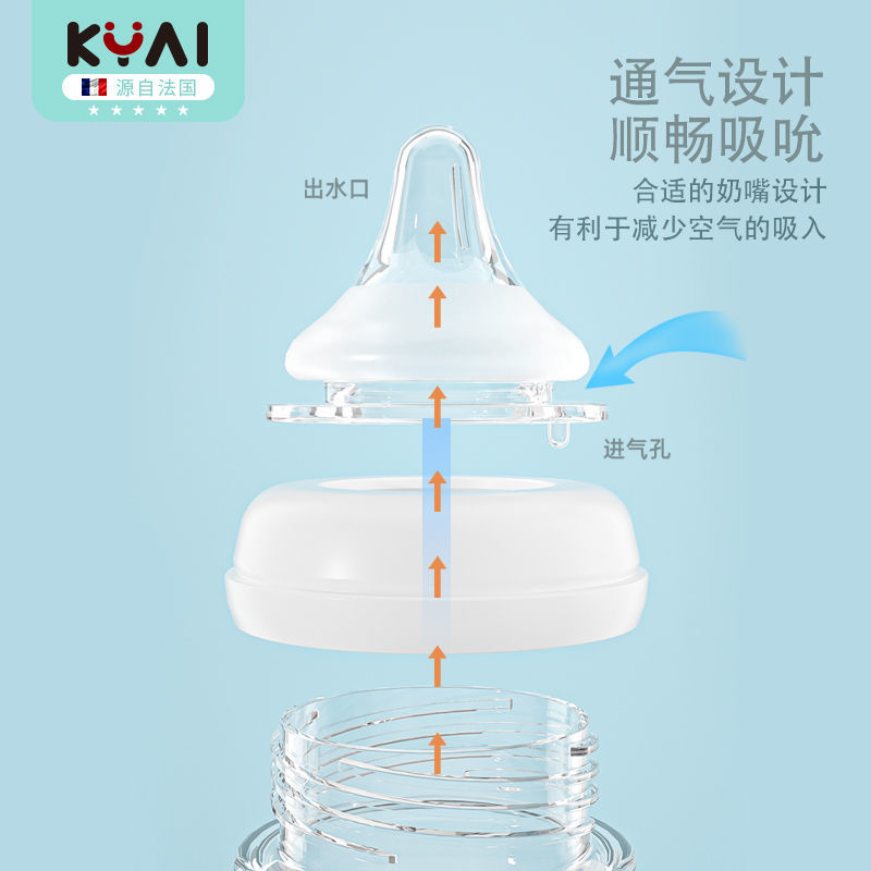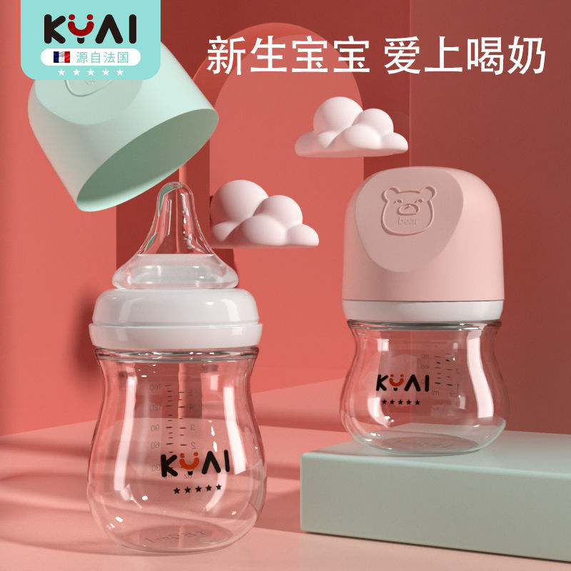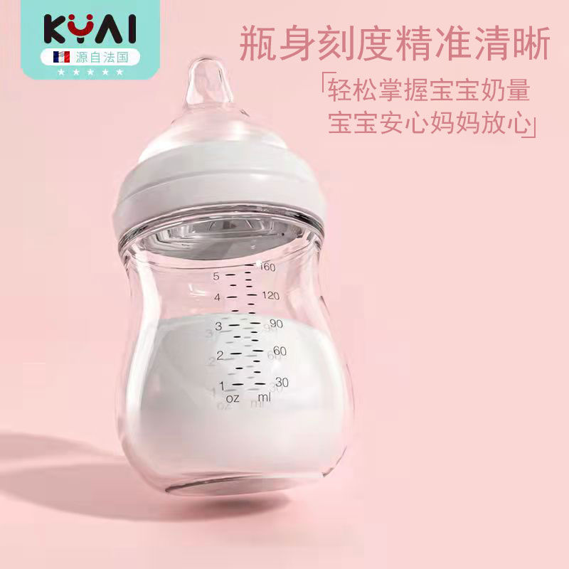 Kangyinai wide-caliber feeding bottle newborn baby glass wide-caliber universal high-temperature-resistant nipple head anti-flatulence