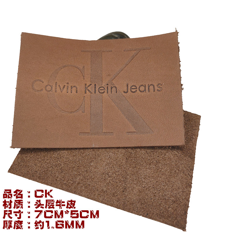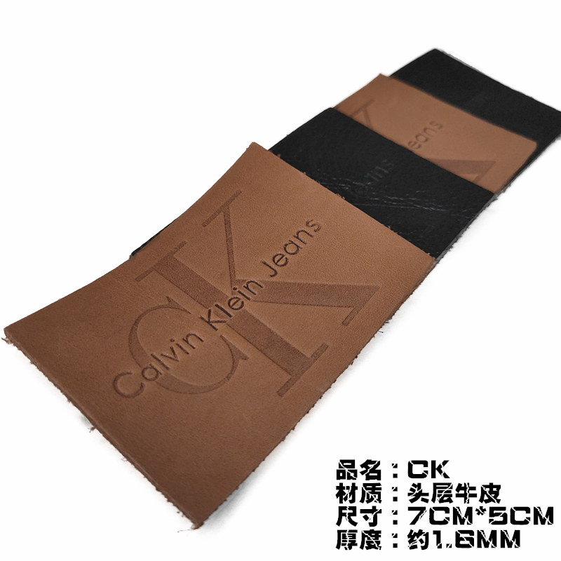 Black first layer cowhide pressed C leather label K jeans waist brand spot luggage leather brand custom branding trademark