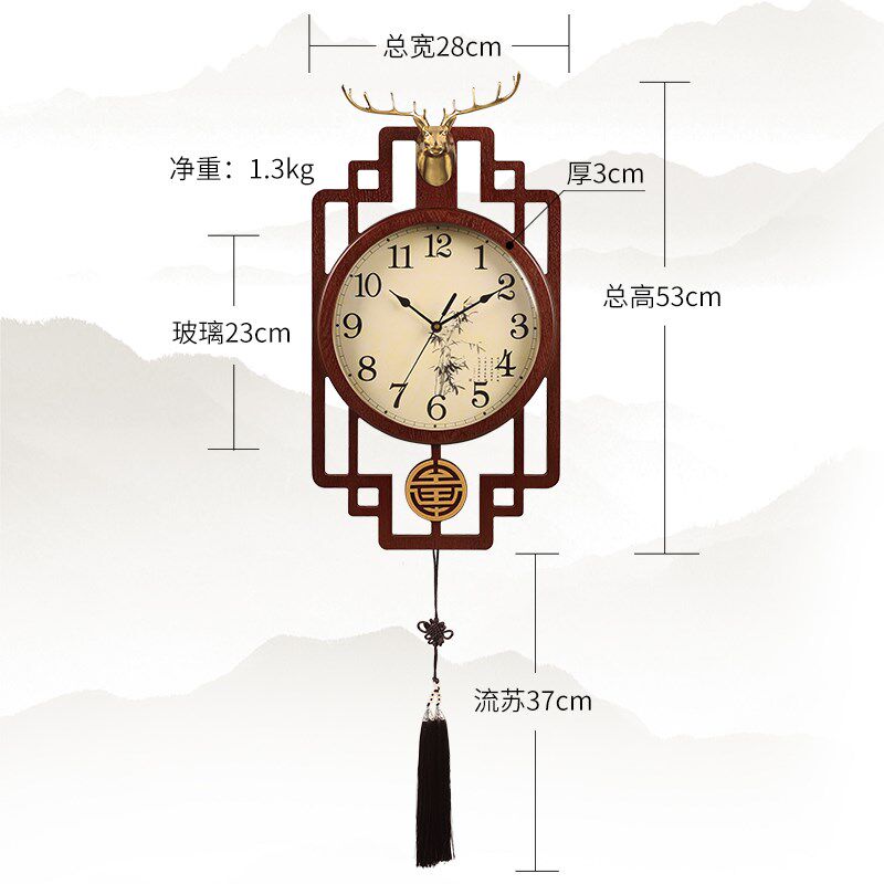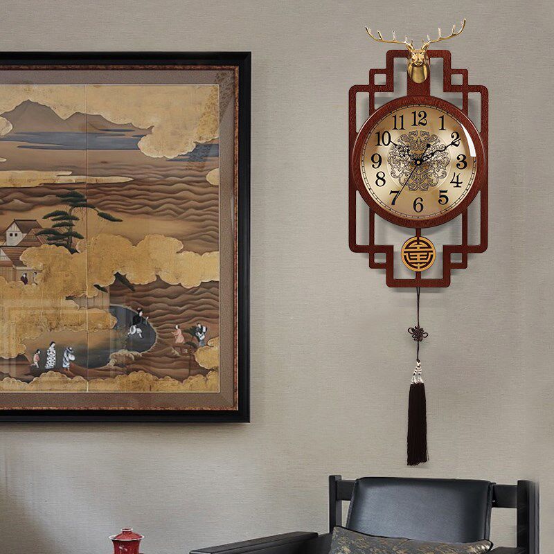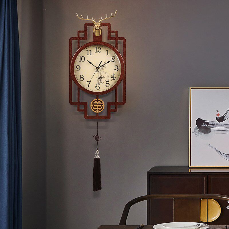 New Chinese Classical wood hanging bell Living room Home and watch China Wind creative personality Retro decorative clock wall-hanging table