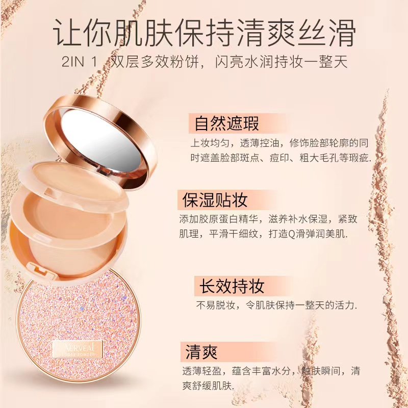 Orchid double-layer powder cake long-lasting oil control concealer makeup setting honey powder waterproof and sweat-proof without taking off makeup official flagship store