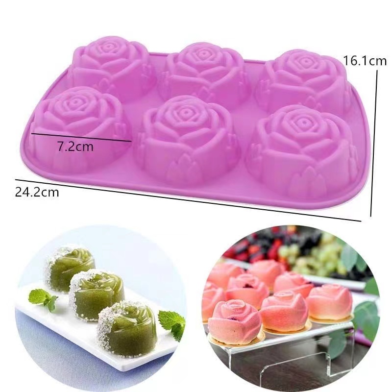 6 Silicone Rose Cartoon Cake Mooncake Handmade Soap Jelly Pudding Chocolate Ice Cream Baking Mold
