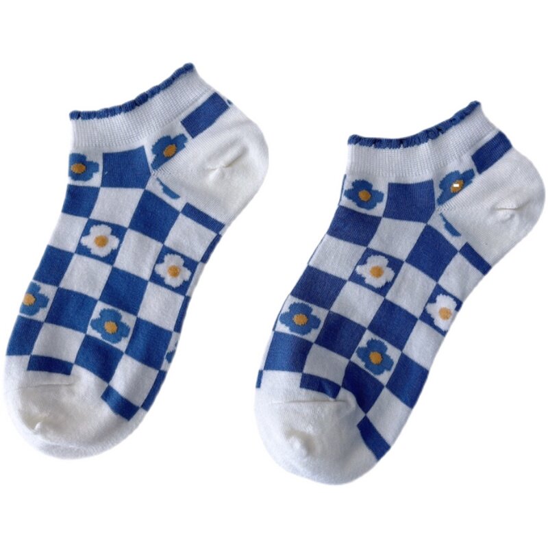 2022 Summer New Socks Women's Pure Cotton Invisible Socks Grid Day Korean cotton socks shallow mouth short socks with invisible roots invisible
