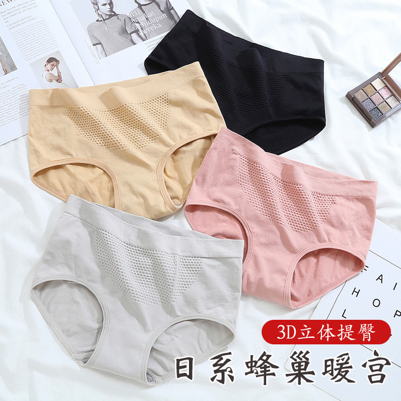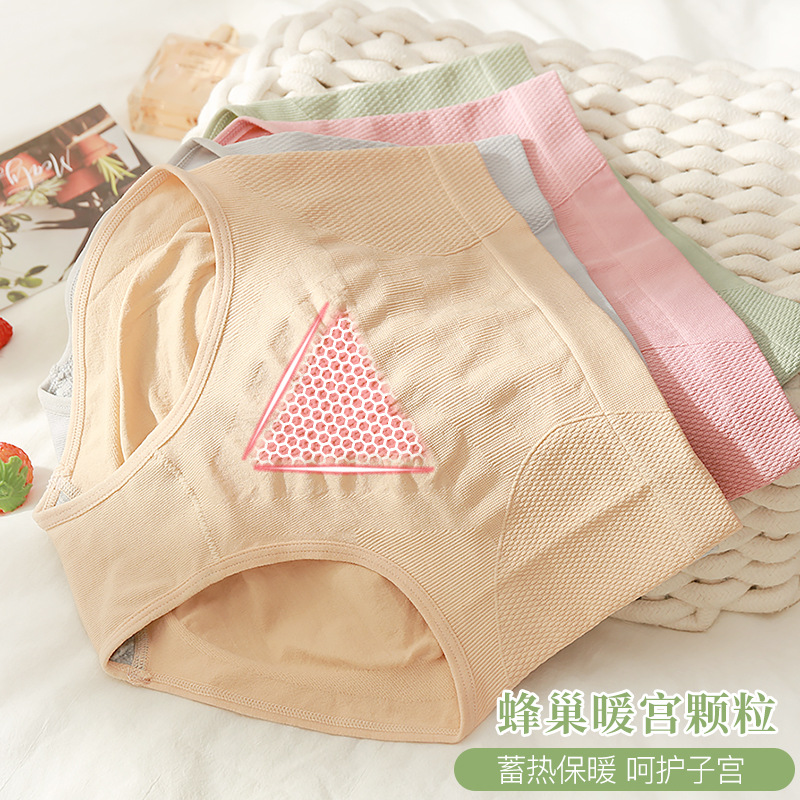 Early spring Japanese cotton crotch warm palace comfortable abdomen and hip panties ladies breathable mid-waist honeycomb seamless briefs