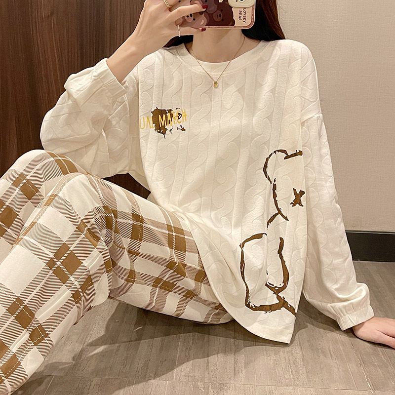 Han edition of pajamas Ms. Spring and Autumn 2023 new cotton cartoon cute students large - size long - sleeved summer home suit