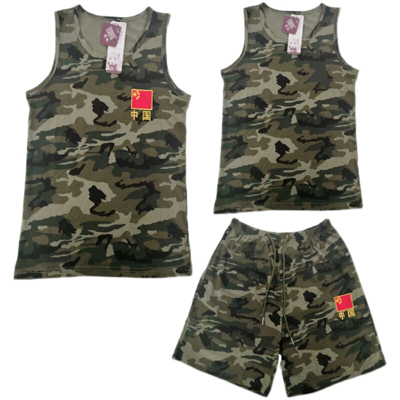 China Camouflage Short Sleeve Wolf short-sleeved pure colour camouflage short sleeves Chinese black vest Chinese camouflage vest pure color camouflage vest Chinese camouflage short sleeve shorts suit wolverhead camouflage short sleeve shorts suit