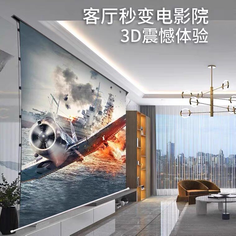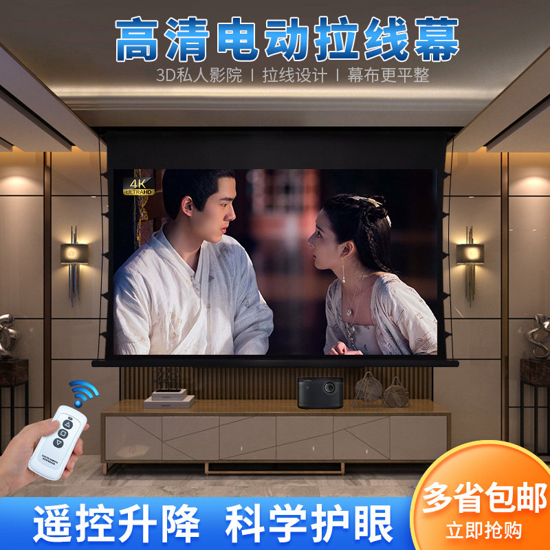 Electric pull wire curtain hidden embedded ceiling curtain HD anti-light projector suspended ceiling home remote control lifting screen anti-light gray crystal black diamond projector machine 4K short focus laser TV screen