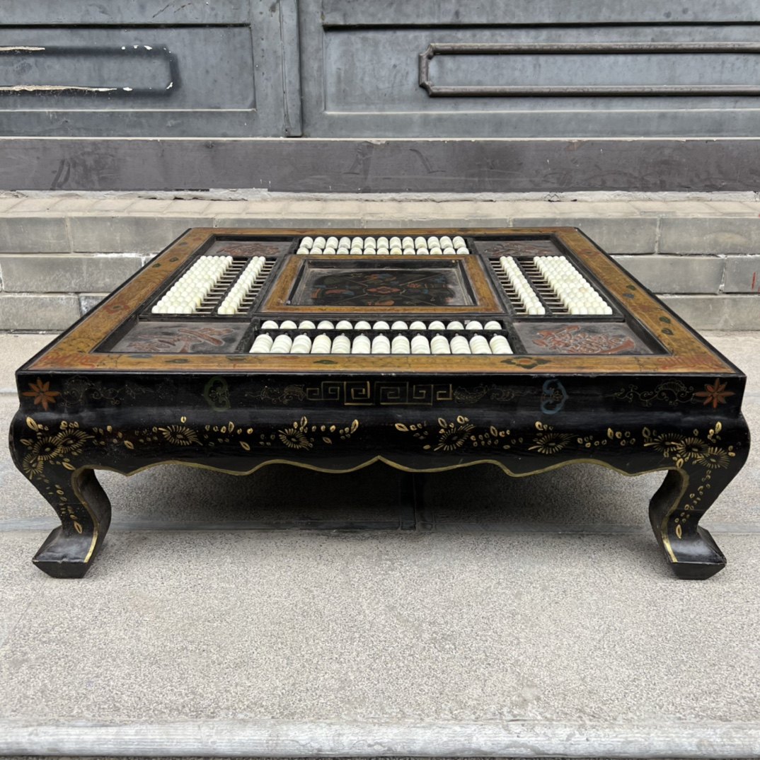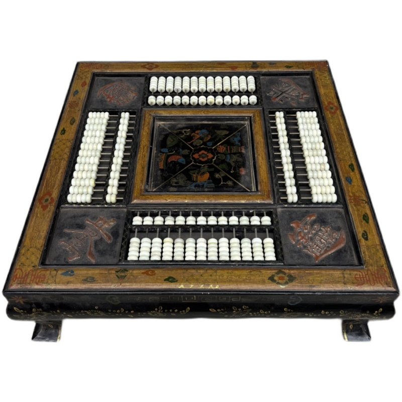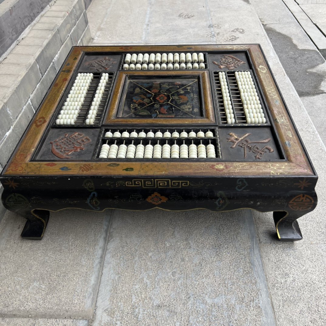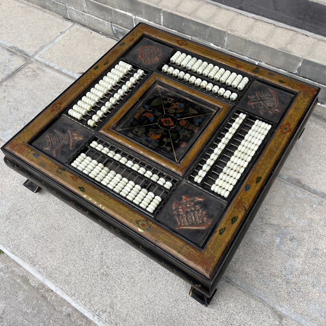 Old Tibetan wood tyre lacquerware Painted Child Pattern Square Abacus Table Abacus