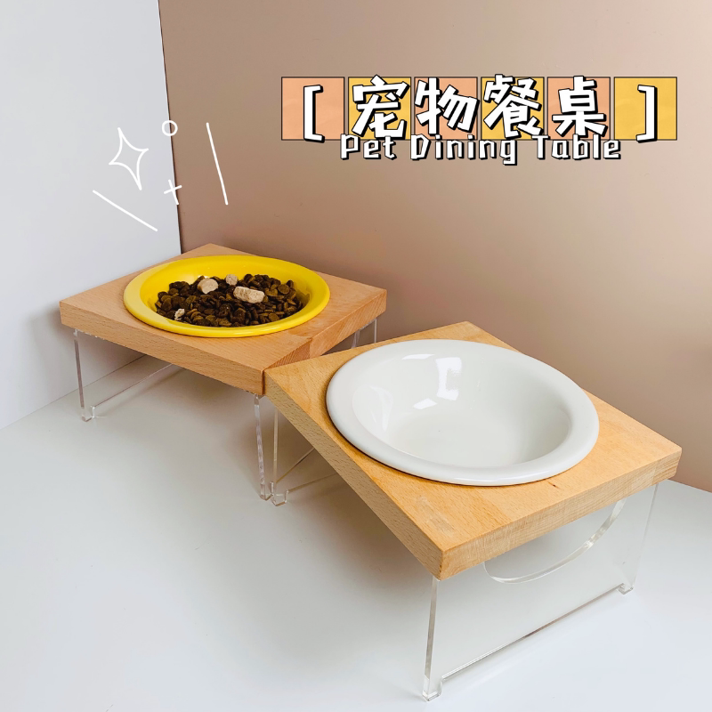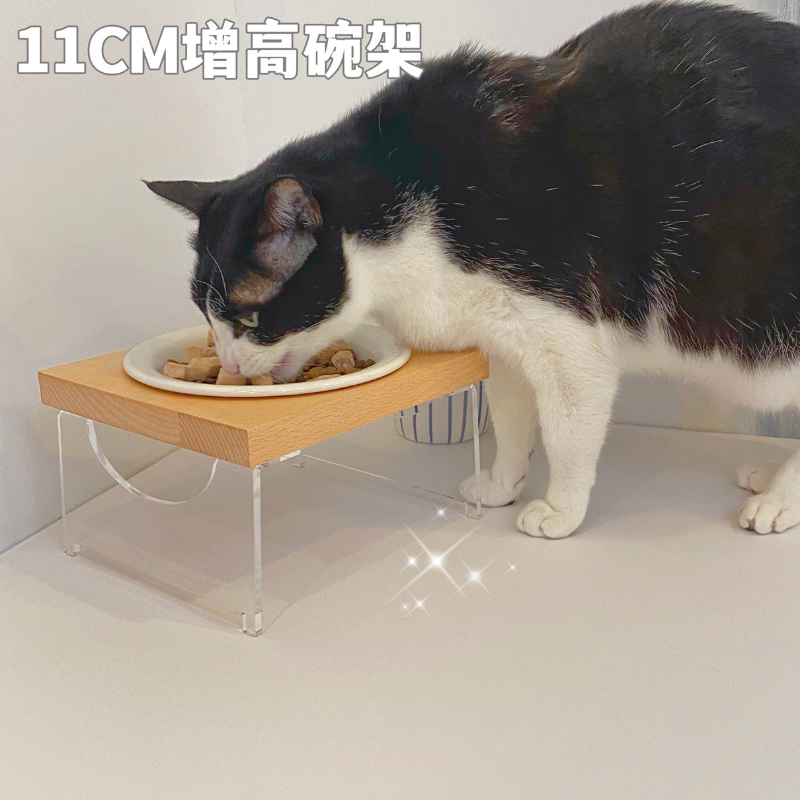 Pet Solid Wood Table High Foot Cat Bowl Rack Large Caliber Ceramic Acrylic Cat Bowl Food Basin Water Bowl protect the cervical spine