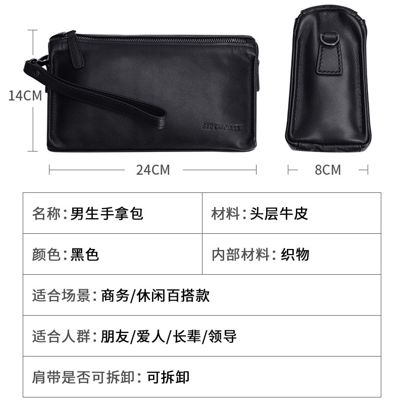 Seven wolves men's hands with bag genuine leather 2022 new large capacity soft buffalo leather handbag male hand grab bag hand purse