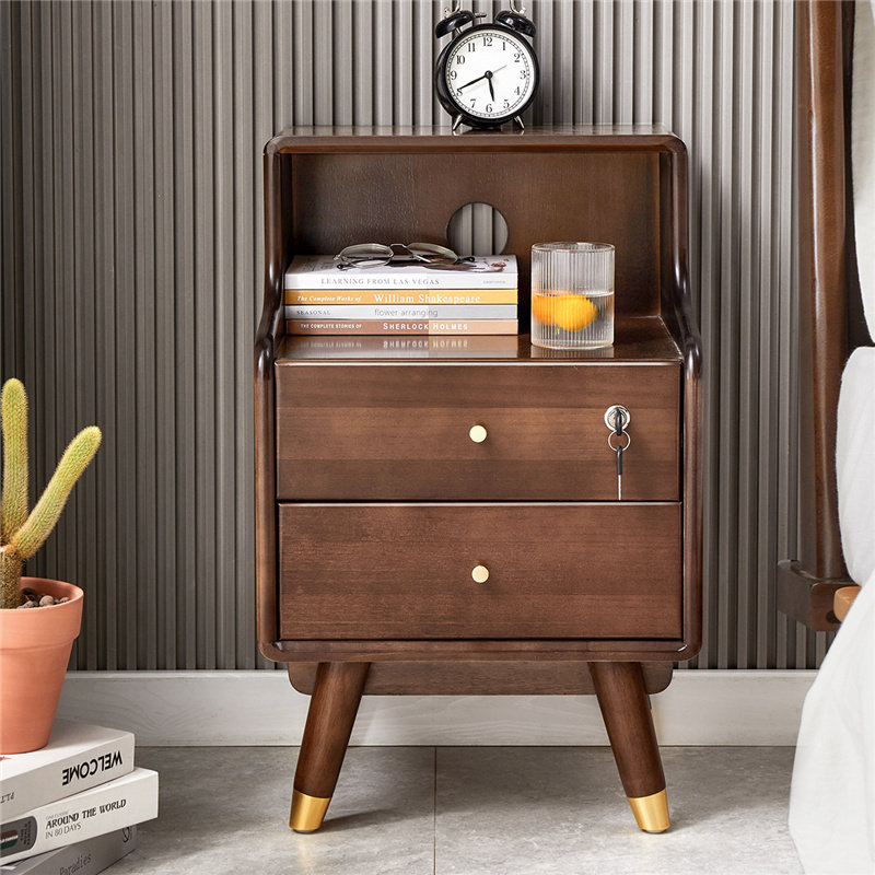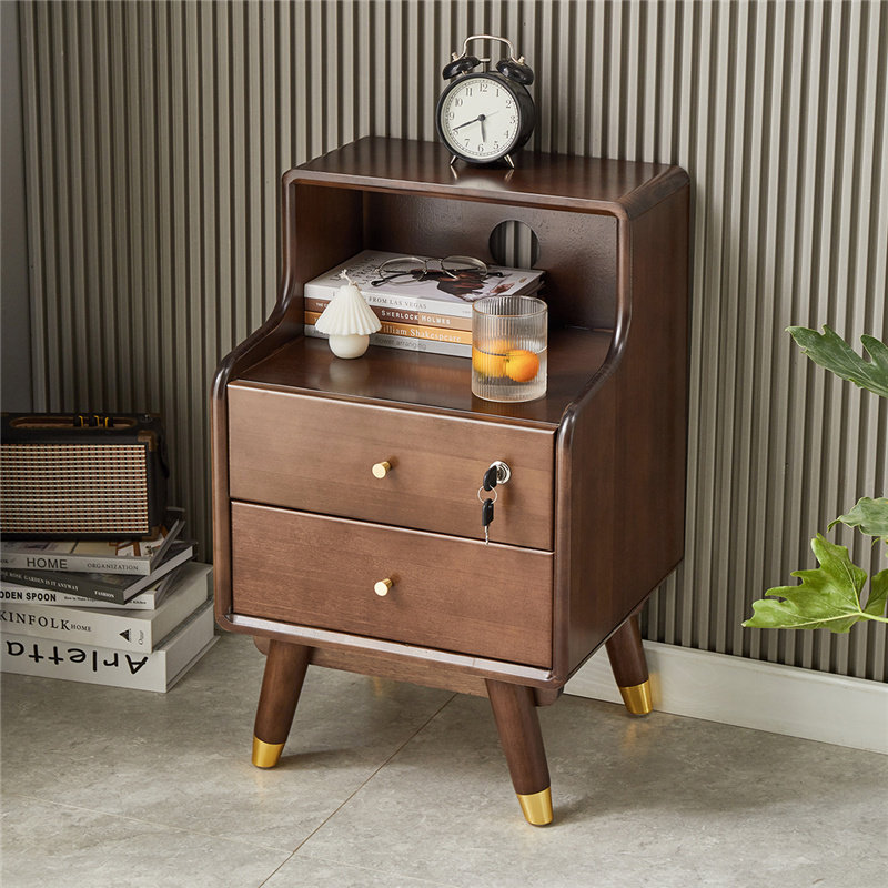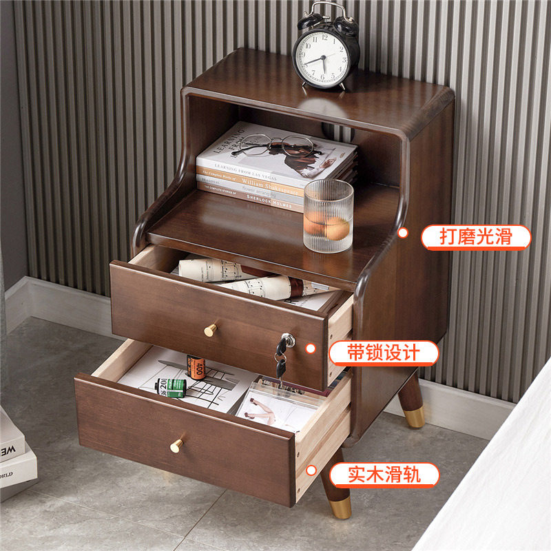 Bedside table simple modern net red minimalist solid wood side cabinet with lock bedroom storage locker light luxury 2021 new
