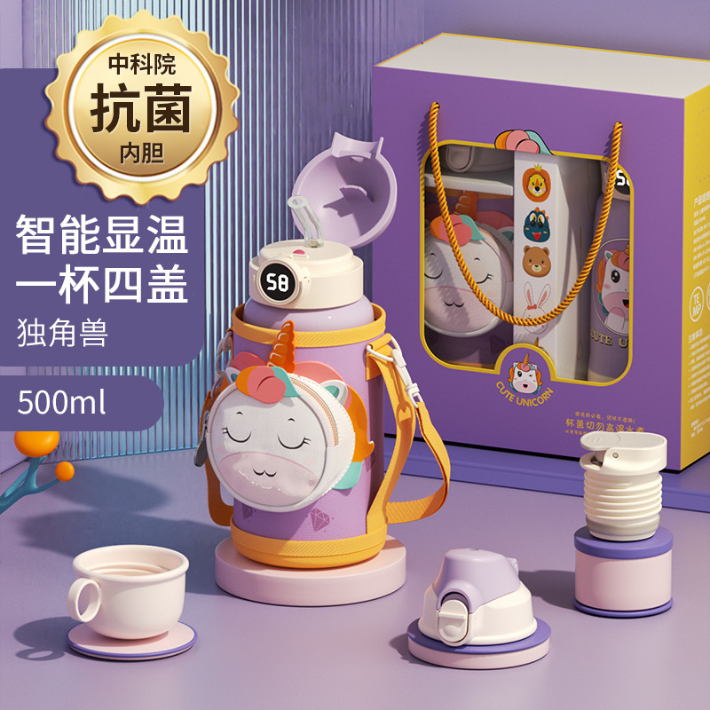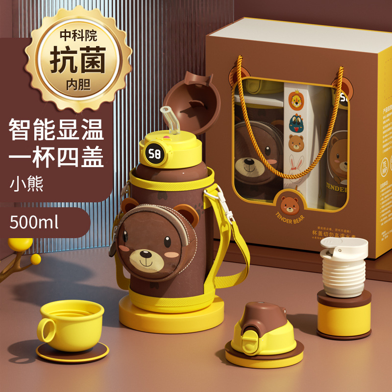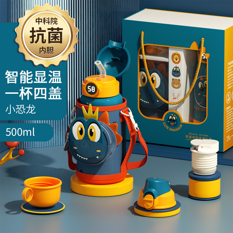 Children's food-grade stainless steel intelligent temperature-displaying straw insulation cup boys and girls go to school baby special direct drinking kettle