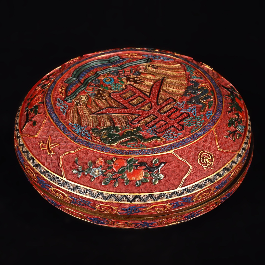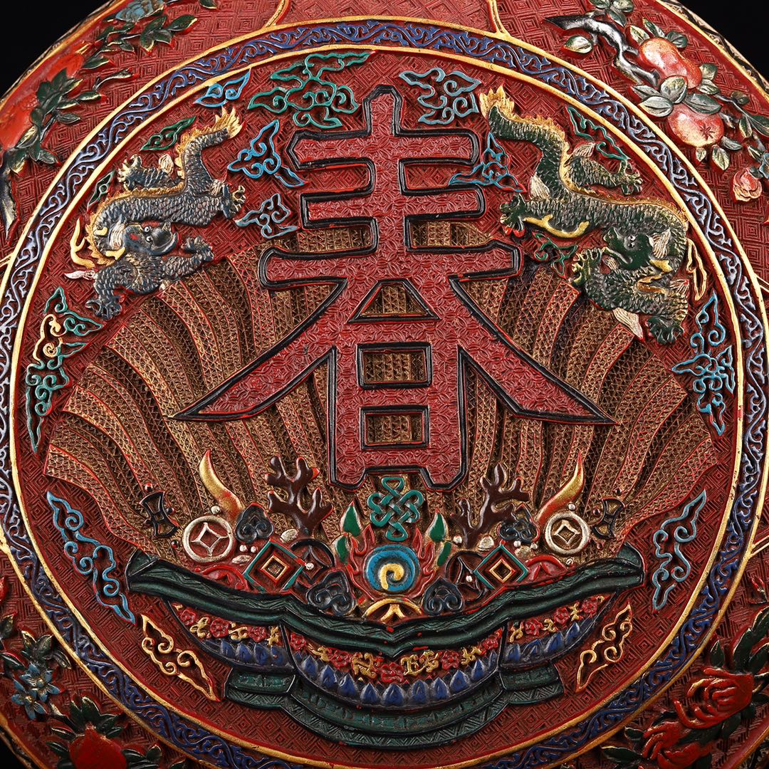 Old Tibetan Old Beijing lacquerware Painted Spring Fu Round Containing Box first decorated box Veneered Box Treasure Box Pendulum
