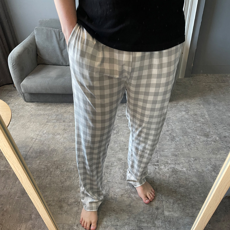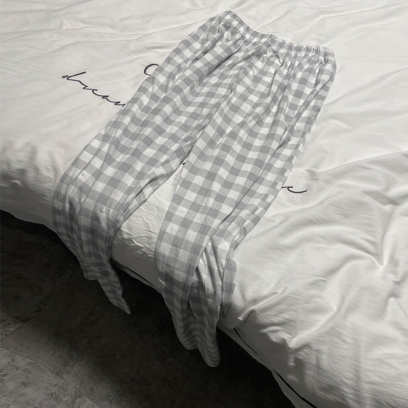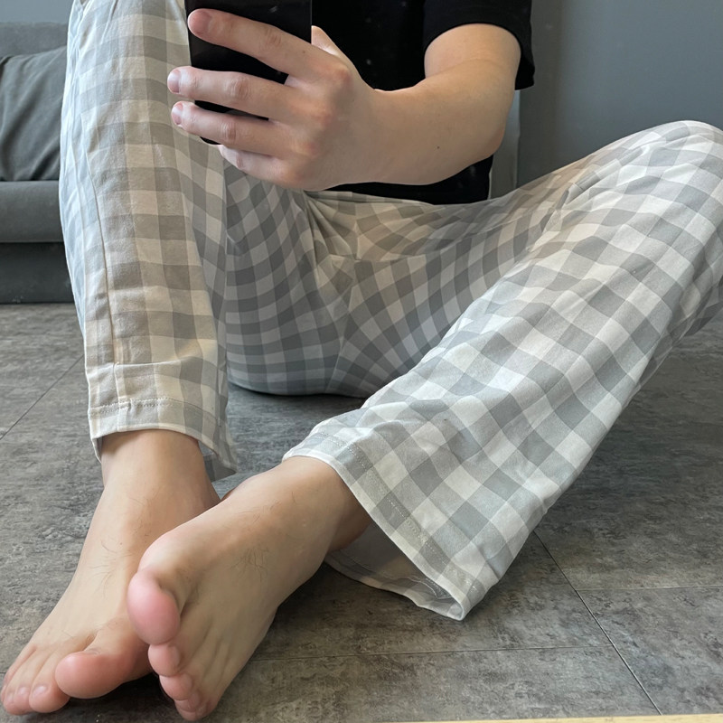 Sleeping Pants Men's Pure Cotton Single Piece Spring Fall Thin LAZY PEOPLE PLAID CASUAL BOYS SUMMER HOME PANTS CAN BE WORN OUTSIDE LONG PANTS