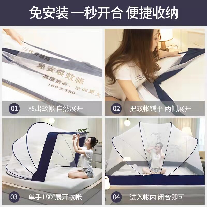 2022 new high-level folding encrypted mosquito net home bedroom free installation of yurt integrated portable children's pattern net