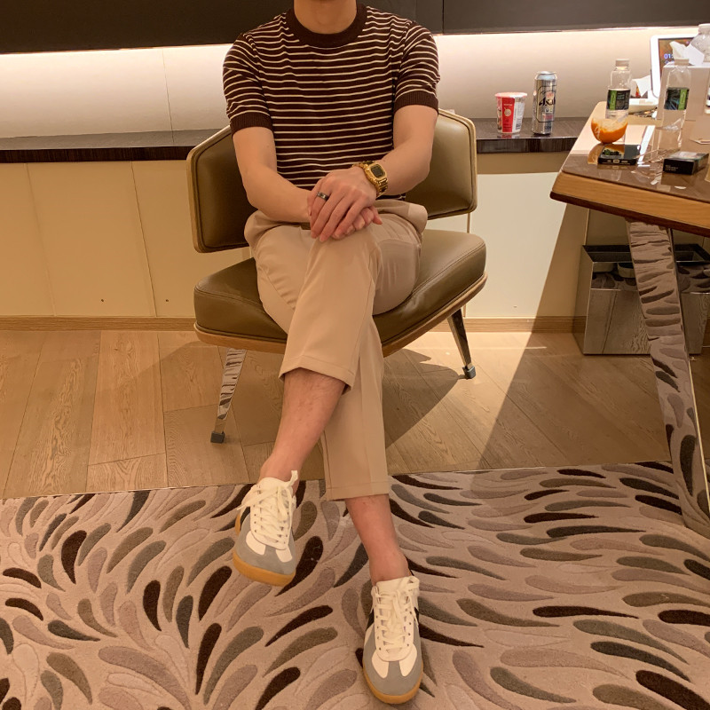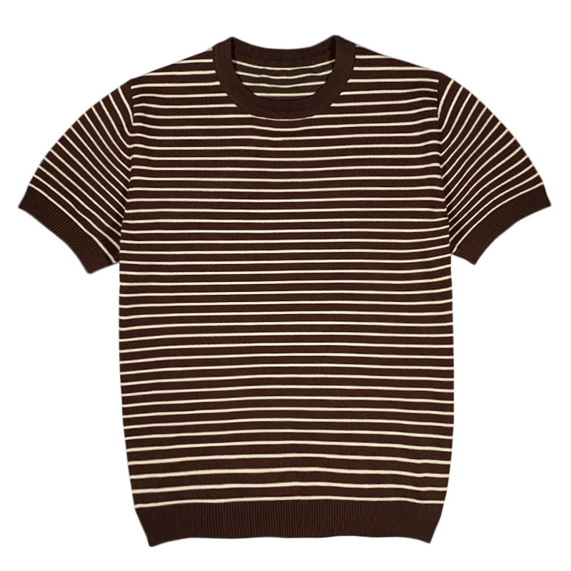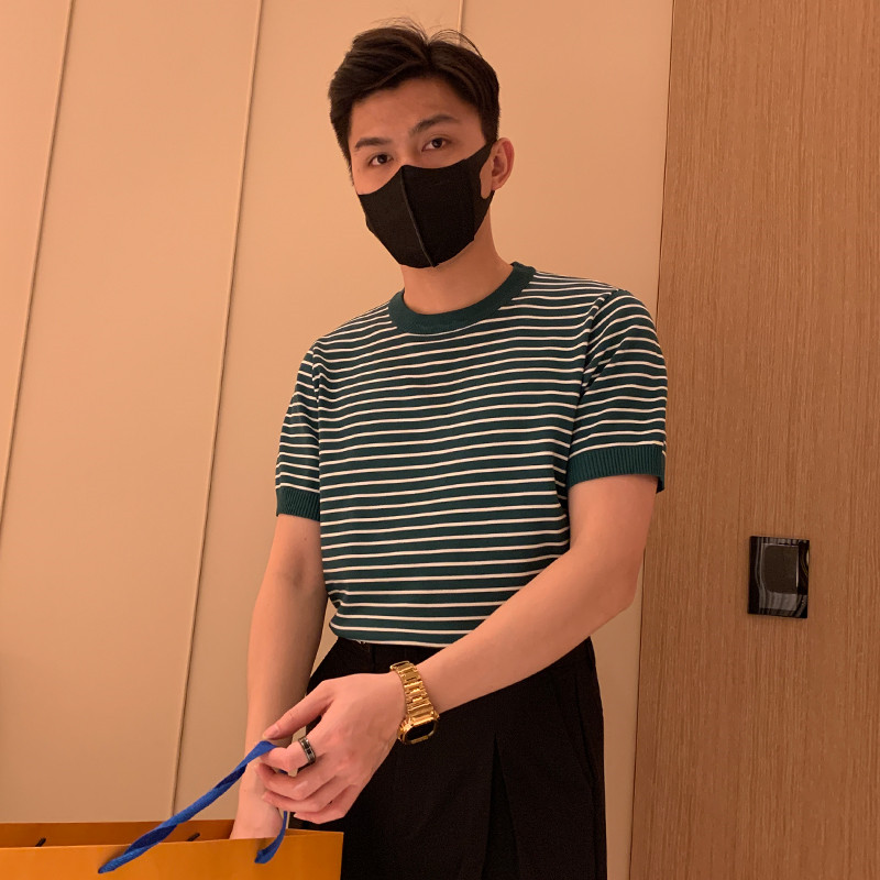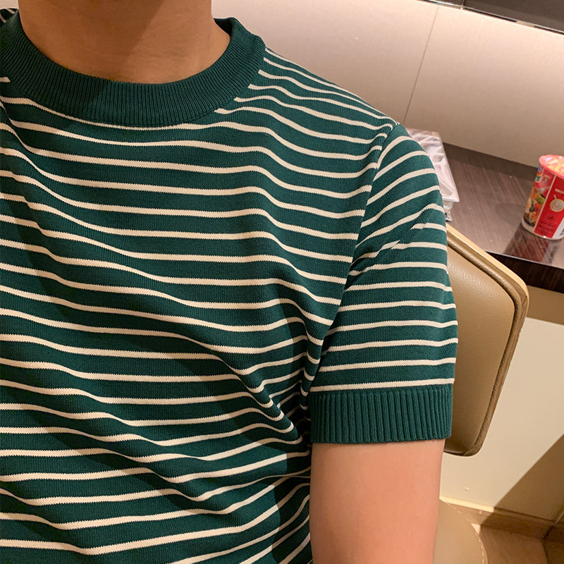 Light touch striped knit half sleeve T-shirt men Korean style summer 2022 popular cool breathable thin body shirt short sleeve men