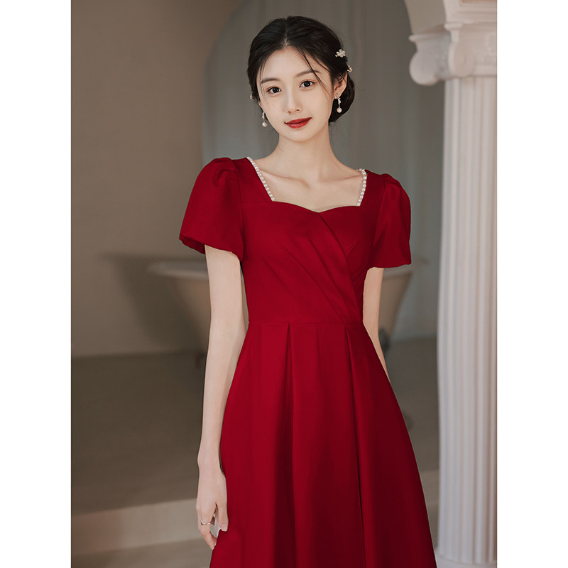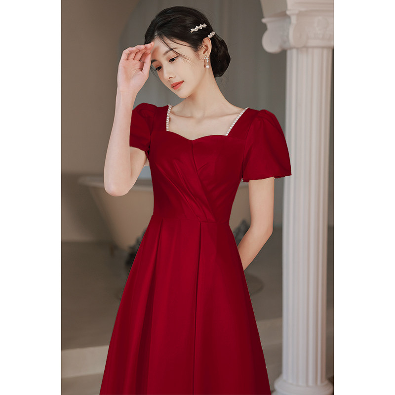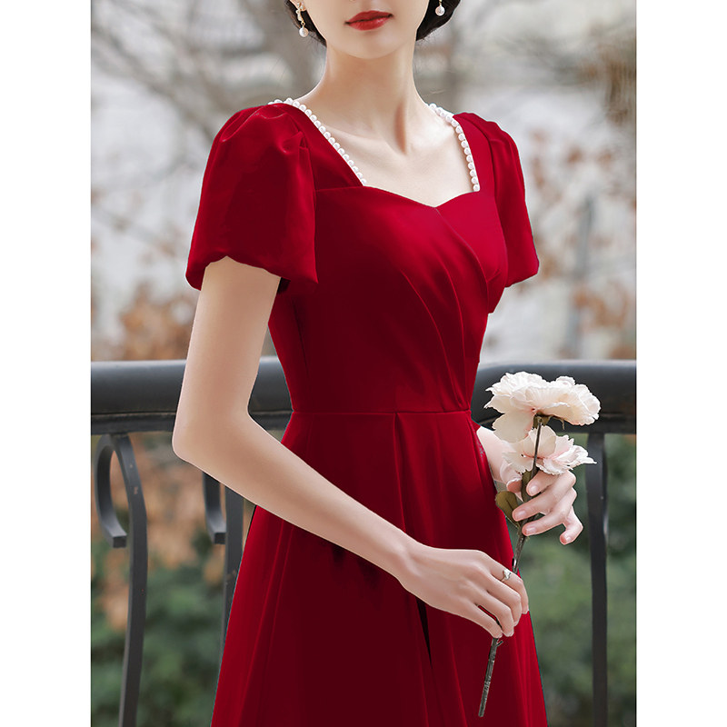 Toast bridal wine red color normally can be worn with small sub-style summer satin 2022 Back to door Engaged Ocean Dress