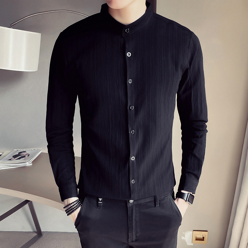European station slim fit ice mitt collar 70% sleeve shirt men cotton linen T-shirt Summer linen short sleeves 50% sleeves shirt