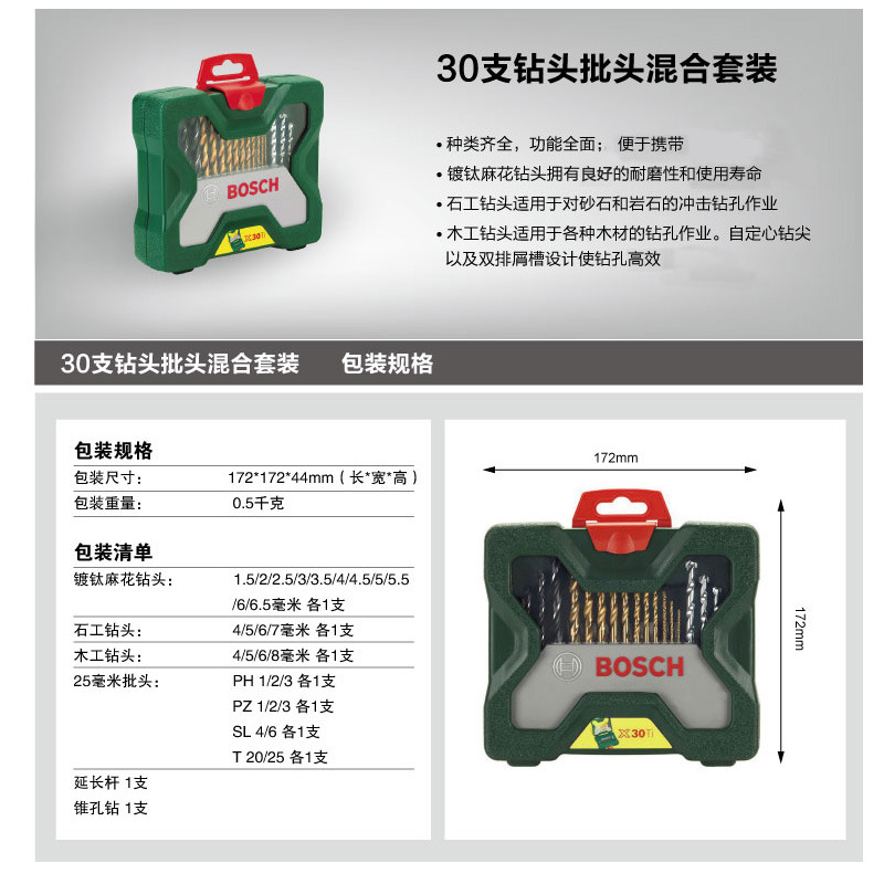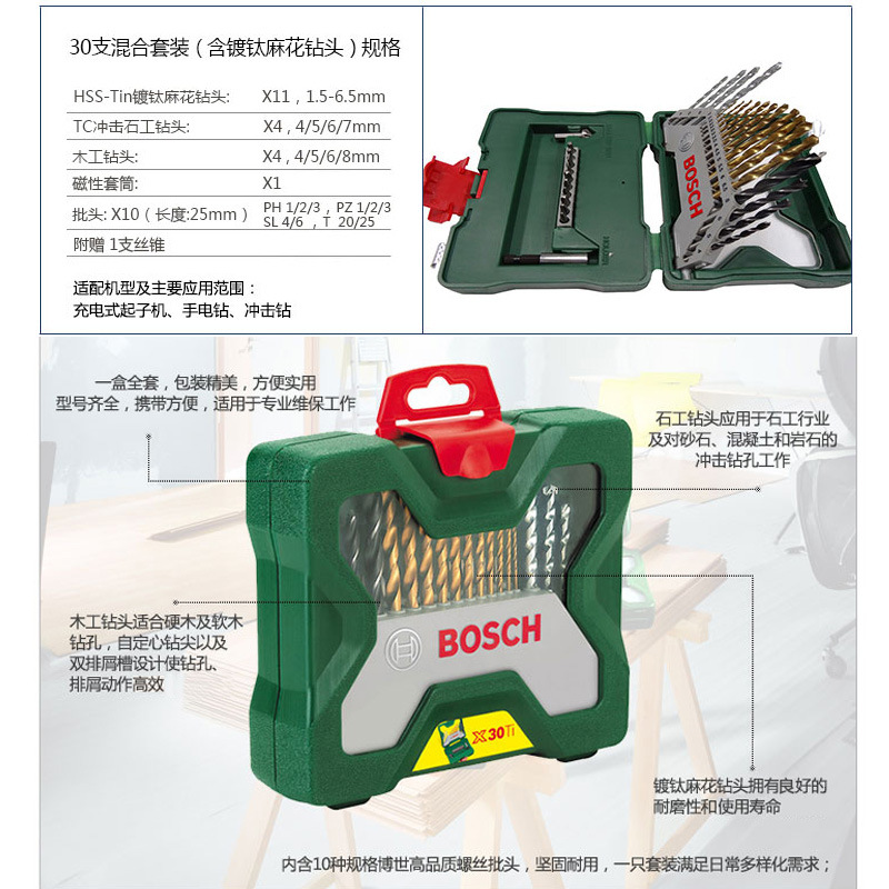 Bosch (BOSCH) 30 mixed set with titanium plated twist drill bit impact drill bit woodworking drill bit masonry