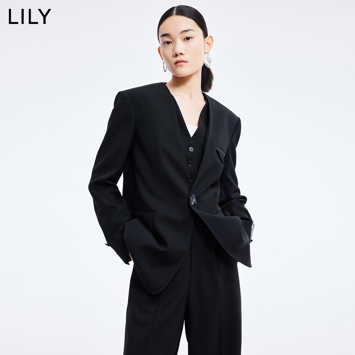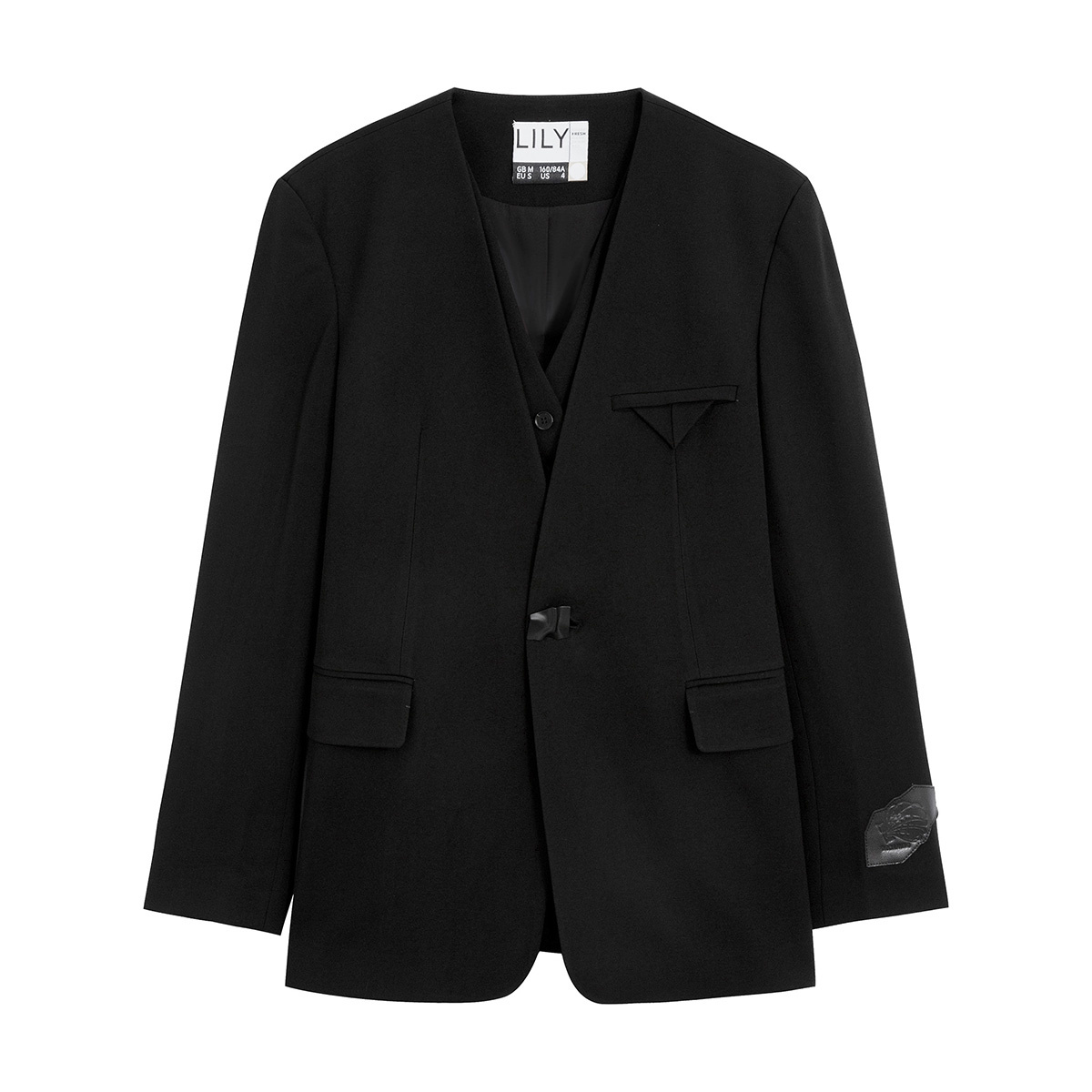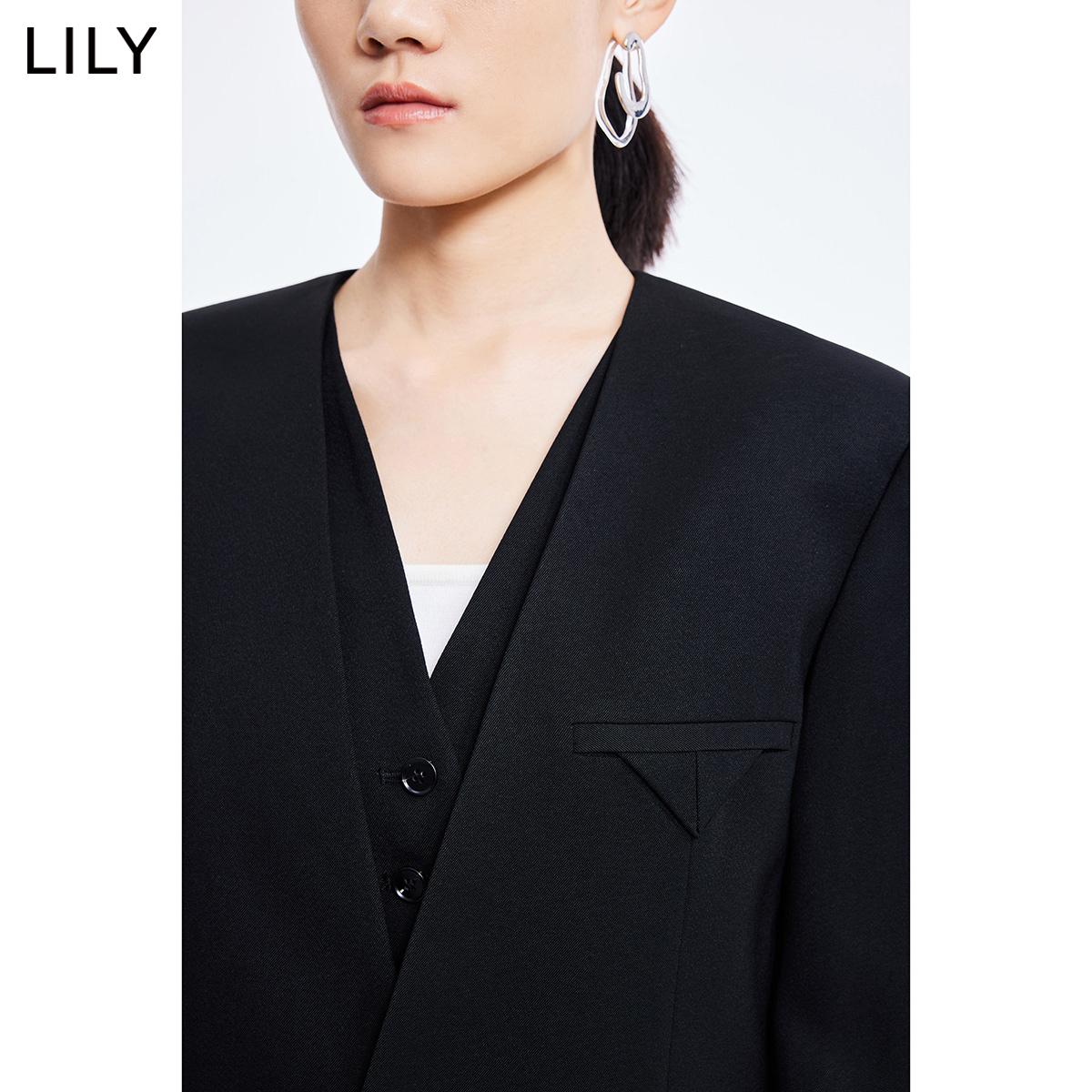 (Mall same section) LILY2022 summer new women's fashion fake two design sense No collar suit jacket woman