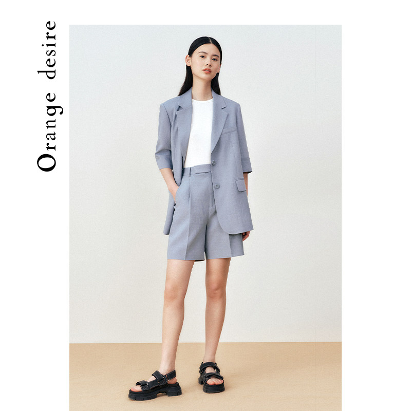 orange deshire 50% sleeves slim in suit jacket woman 2022 Summer casual blouses design feel Western-style clothes