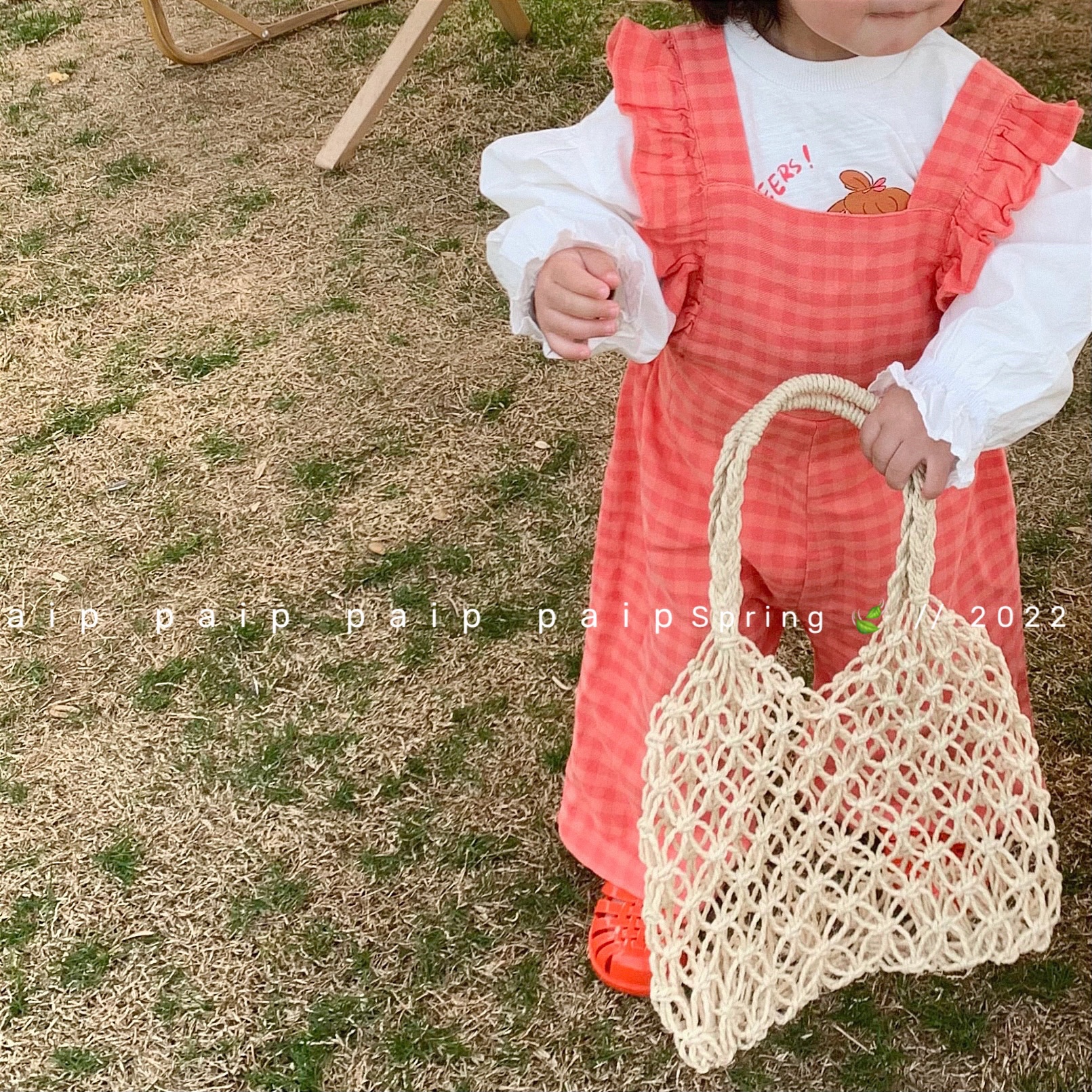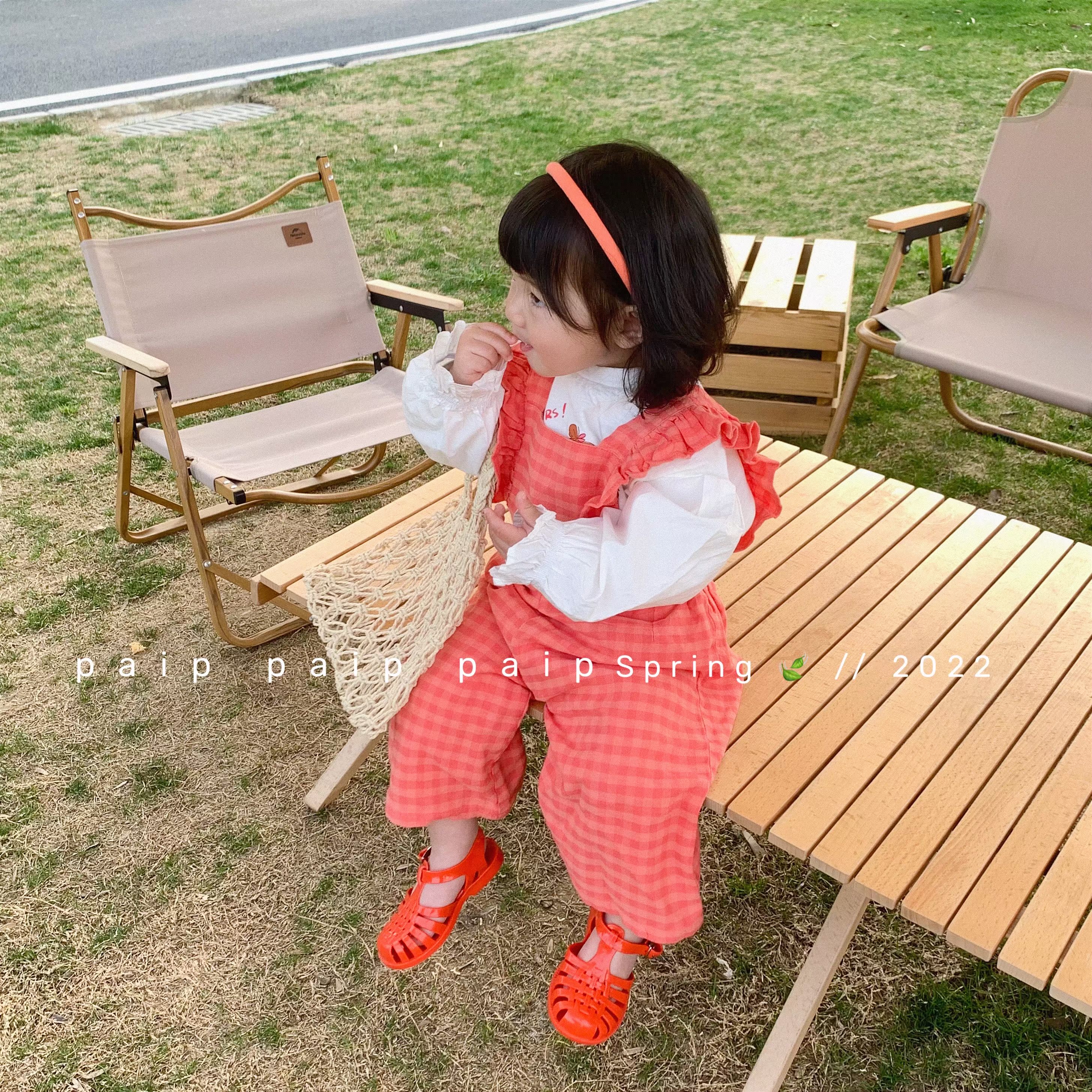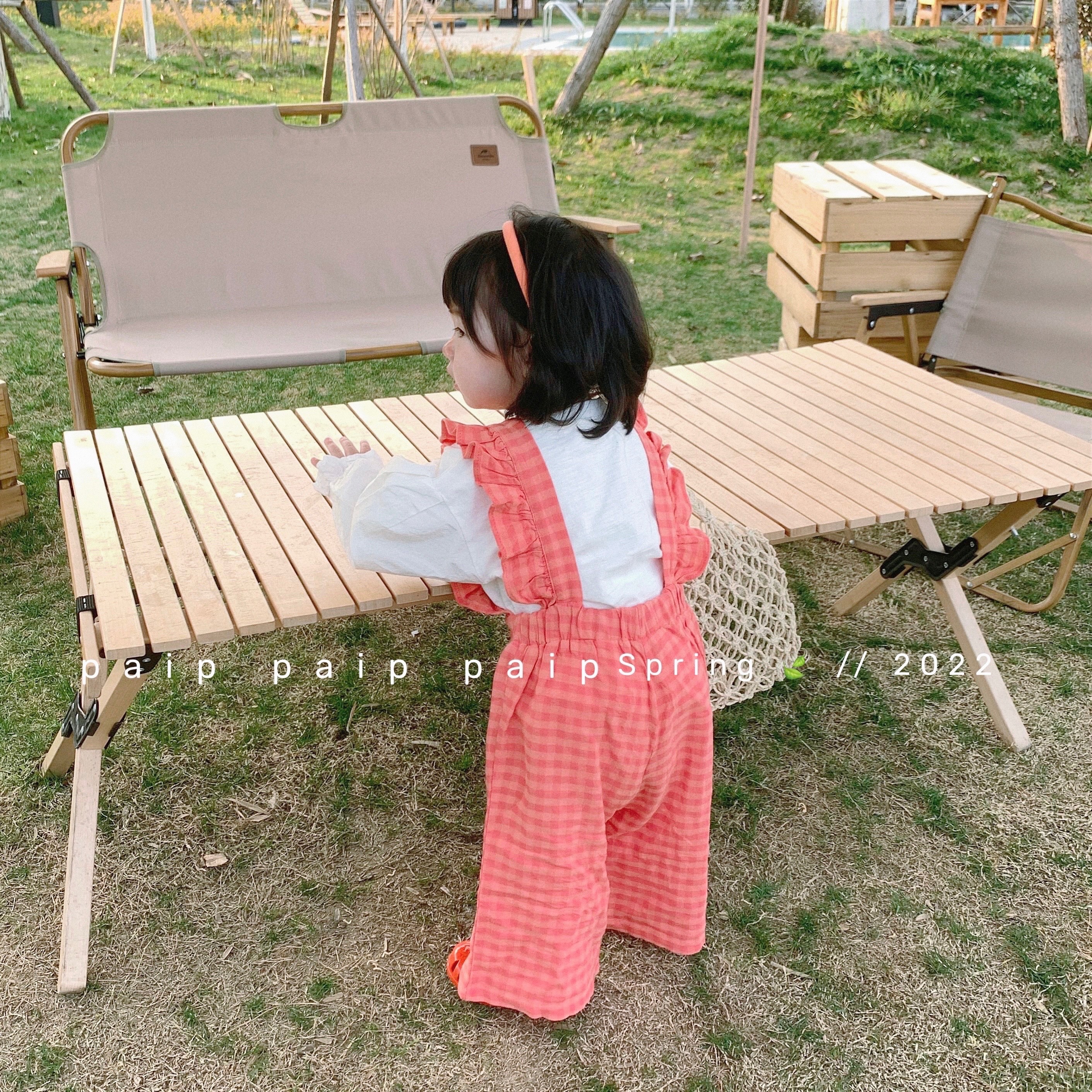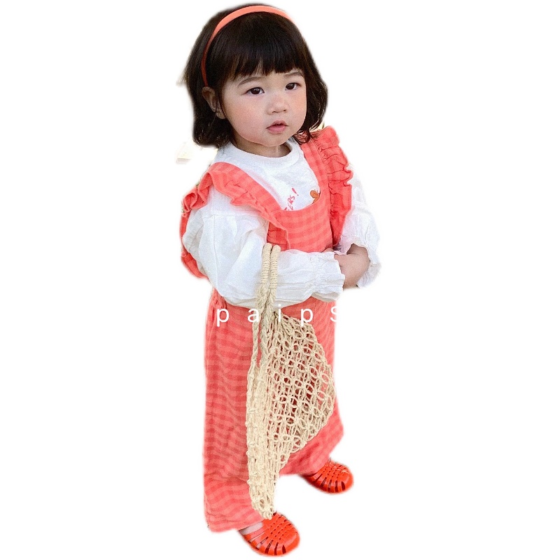 Pig Small Pie 2022 Spring Summer Girl Dress Lotus Leaf Sleeve Long Sleeve T-shirt Plaid Cuddling Bag Long Pants Suit Korea Cute