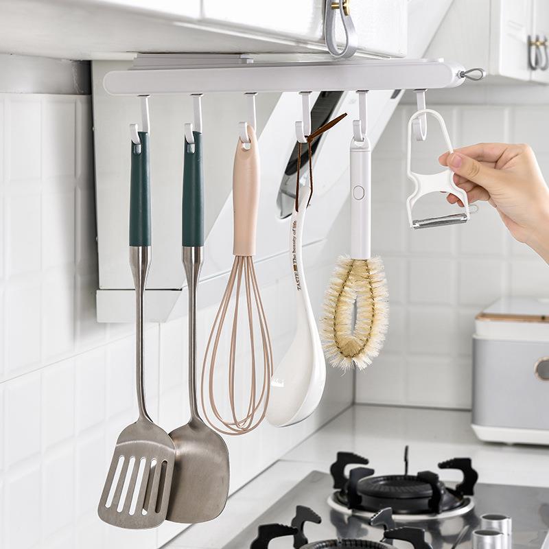 6 Tandem Hook Flex Hook Pull-out Kitchen Bedrooms Versatile tandem row hanger with handle free of perforated hood hook